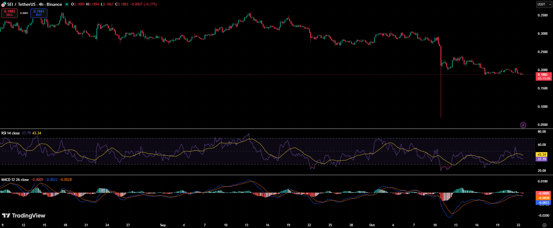 Technically, the RSI around 43 shows that bearish momentum is fading, while the MACD is flattening near the zero line – often an early sign of a potential trend reversal. Combined with increasing on-chain activity and institutional headlines, Sei could be on the verge of shifting from accumulation to expansion mode if it confirms a breakout above $0.20 in the days ahead.