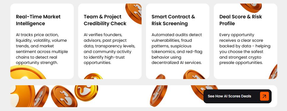 | DeepSnitch AI (DSNT) | AI Data & Market Intelligence | Converts raw on-chain data into actionable insights | Demand for analytics tools rises as market activity and competition increase | Tool-based platforms gain value once utility becomes essential |