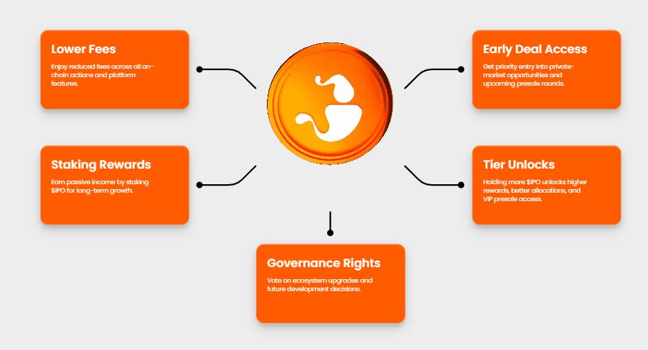 Holding $IPO unlocks curated private and pre-IPO opportunities on the platform. Users engage through tiered access and platform activity, rather than passive holding.