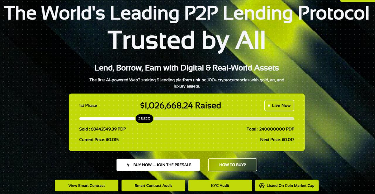 Currently priced at $0.015, PDP stands out as one of the most affordable yet fundamentally strong assets in the market. Analysts project a potential listing price of $0.5, translating to gains of up to 8,000% for early participants.
