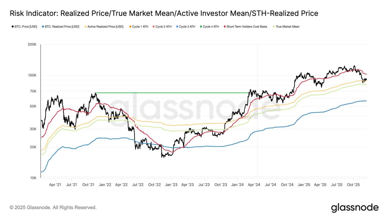 In simpler terms, many people who invested in recent months would be at a loss. The good news is that, at the same time, the price remains above the more “structural” levels of the market, such as the True Market Mean at $81,000. It is also well above the realized price (the average price that all BTC holders worldwide, including long-holders) at $56,000.