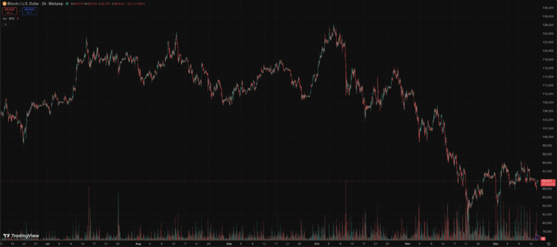 Пазарът на криптовалути влезе в пореден период на повишена волатилност. Биткойн наскоро падна под нивото от $90 000, като повлече надолу основни активи като Етериум и Solana, докато трейдърите реагират на макроикономическа несигурност и променящи се условия на ликвидност.