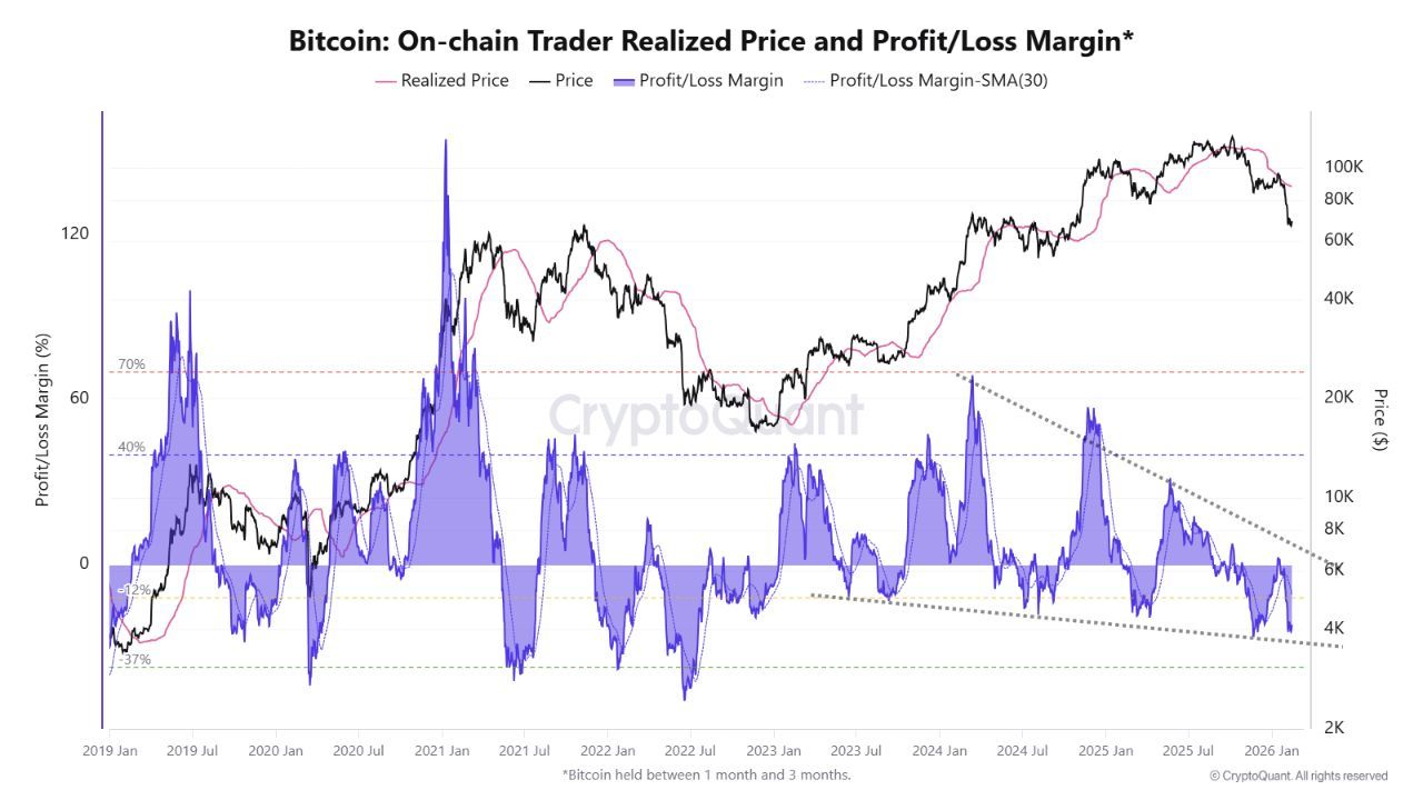 At the same time, short-term holders – those who have held Bitcoin for one to three months – are sitting on roughly 20% unrealized losses. Historically, this level of underwater positioning has aligned more closely with local bottoms than cycle tops.