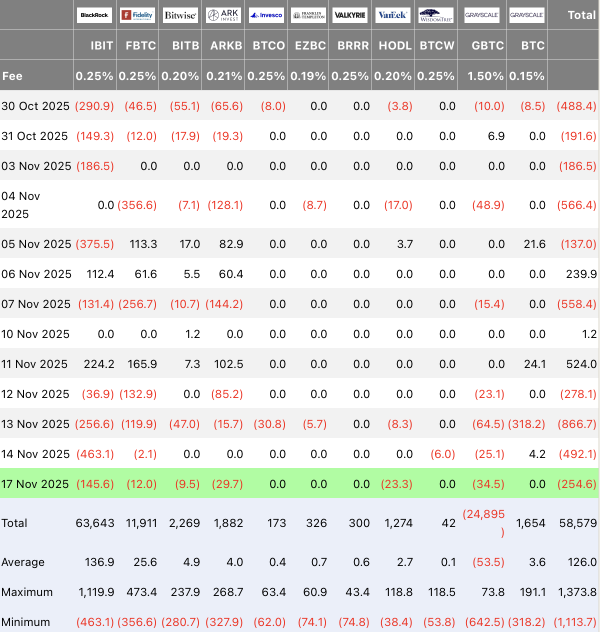 The shift comes after a sharp day of outflows. Based on the latest daily data, several major issuers recorded $254 million in outflows on 17th of November.