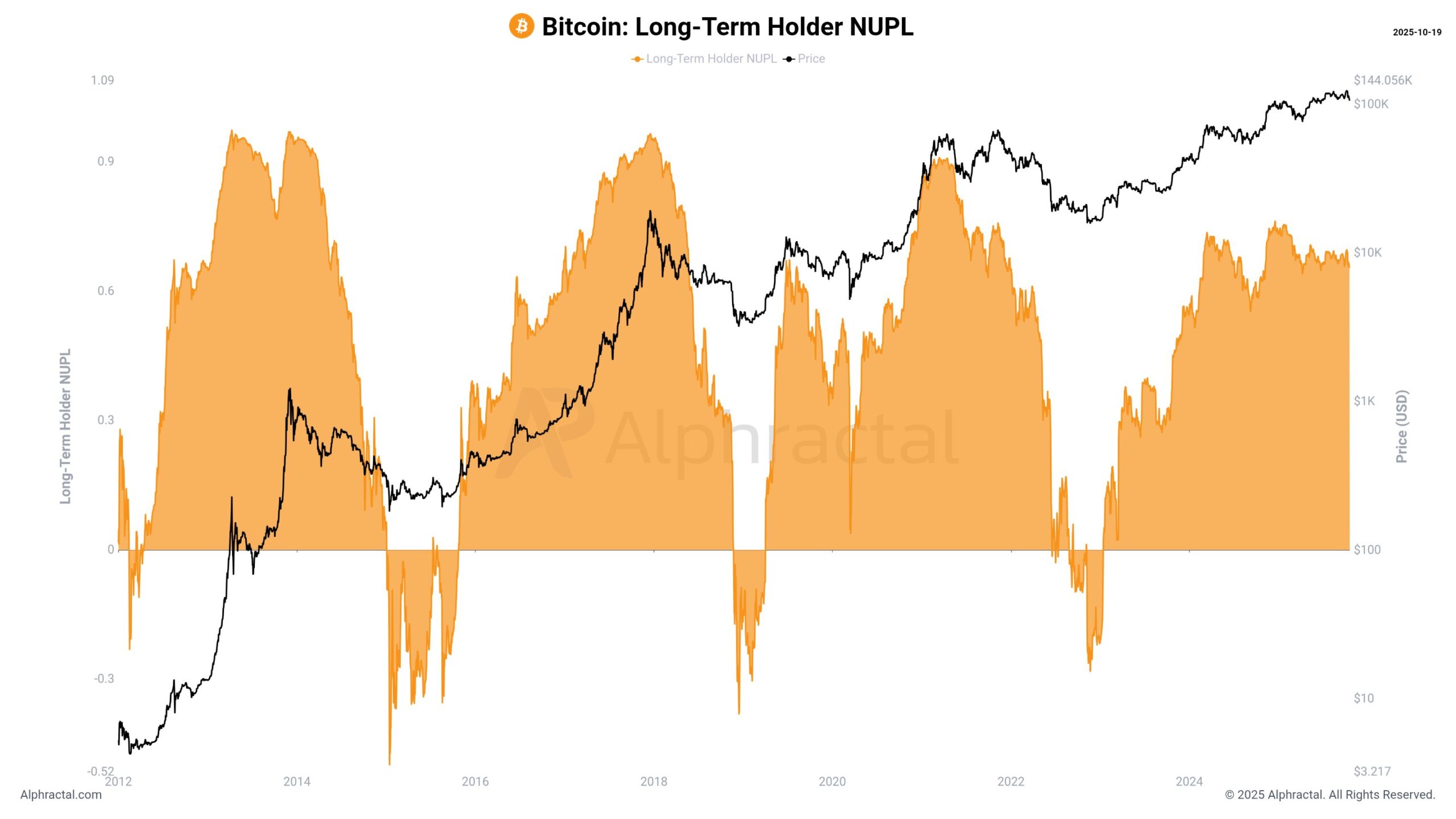 Recent on-chain data from Alphractal shows that LTHs continue to enjoy strong unrealized gains despite the market cooling near the $110,000 zone. In contrast, many short-term participants who entered late in the rally are sitting on unrealized losses – a classic mid-cycle tension that often defines market sentiment before major breakouts.