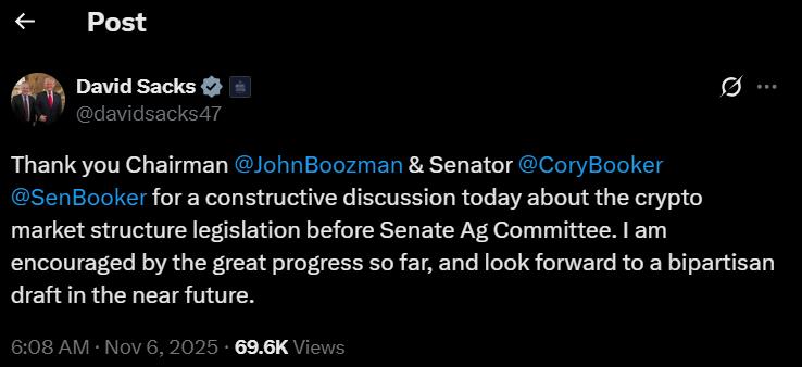 The White House crypto strategy centers on legislation aimed at building a safer and more transparent market. Congress passed the GENIUS Act, with the CLARITY Acts coming through, establishing clear rules for stablecoins and a broader crypto market structure. David Sacks said bipartisan discussions in the Senate are progressing toward final approval.