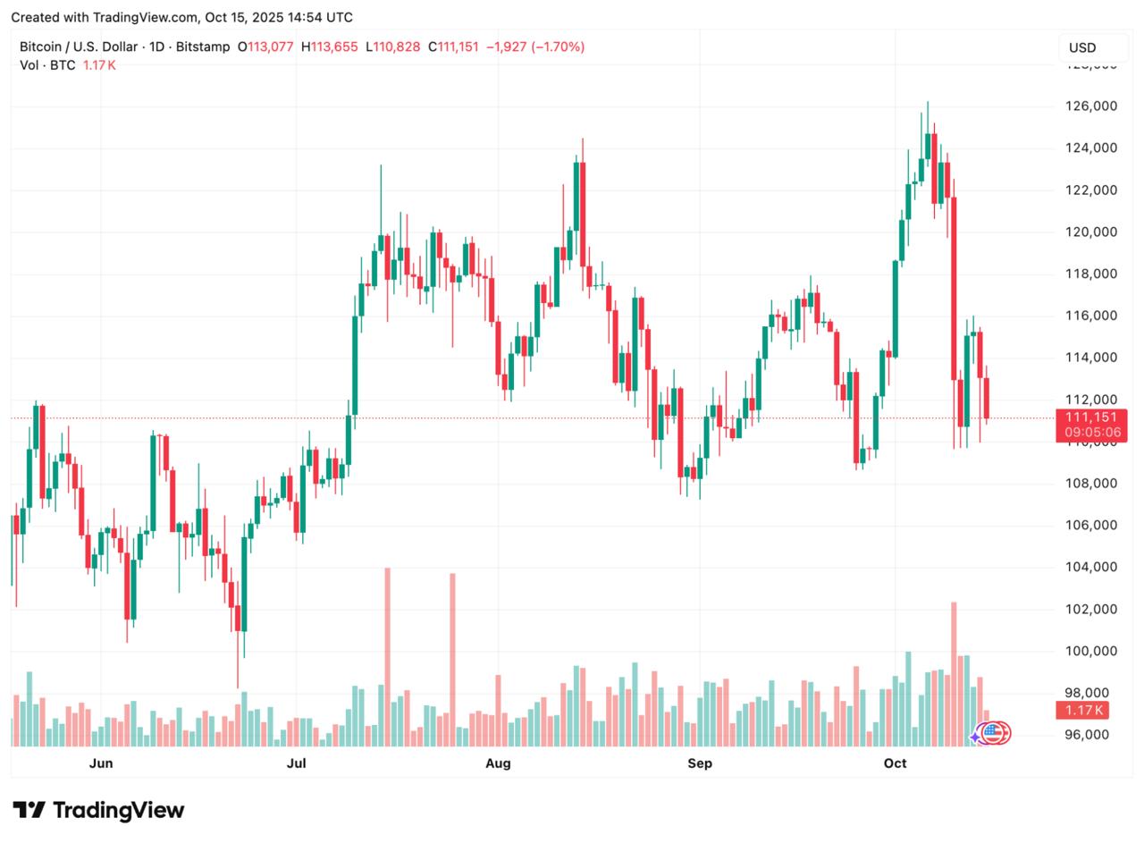 Bitcoin prices are at around $111,135, with traders considering a threatening rising-wedge formation and a whale-shorting wave.