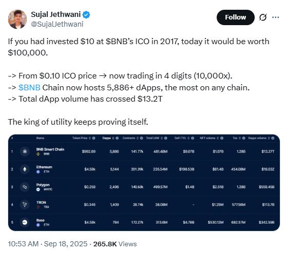 However, their days of astronomical returns are behind them. The likelihood of a 100x or even a 10x gain for BNB or SOL at this stage is extremely low, if not outright impossible. Simply put, it is much easier for a smaller and overlooked project to multiply in value.