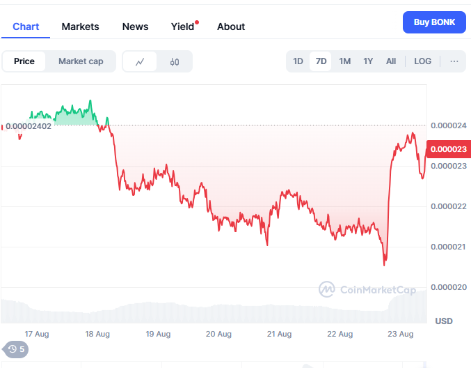 The live price of Bonk today stands at $0.000023, reflecting its current market position in the rapidly evolving crypto landscape. Over the past 24 hours, Bonk has recorded a substantial trading volume of $446,129,302, highlighting vigorous market activity and investor interest. Despite this momentum, the coin has experienced a slight dip of 2.41% over the past seven days, showing moderate short-term volatility while maintaining its appeal among crypto enthusiasts.