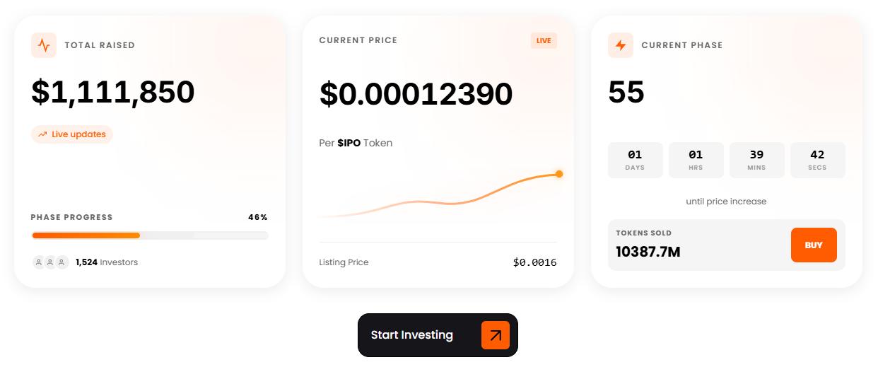 Right now, the $IPO is $0.00012390 per token. Put in $1,000, and you’re getting about 8,071,025 $IPO.