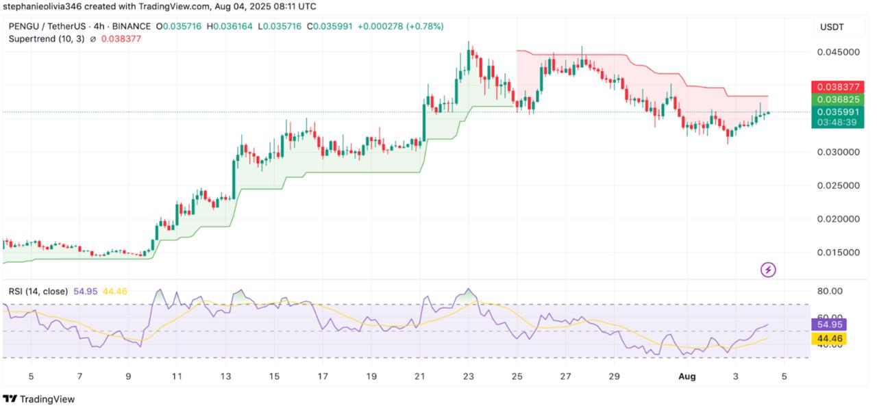 PENGU Trades Near $0.036 Amid Short-Term Recovery