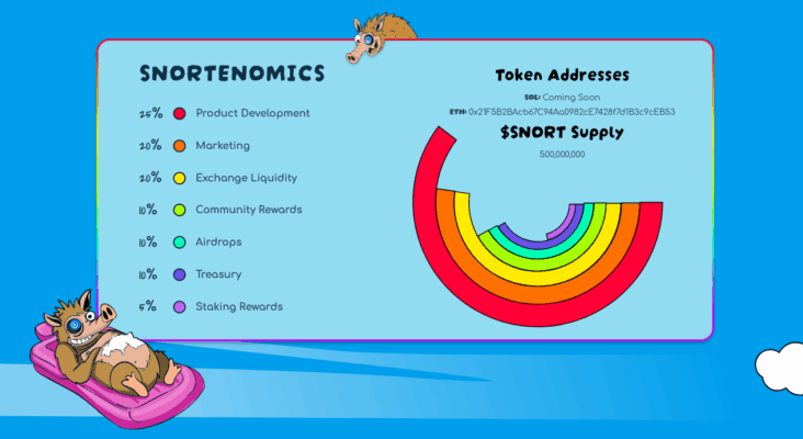 Auch hier gibt es ein erstes Staking-Angebot, das noch im Presale eingesetzt werden kann: Mit einer APY von 107 Prozent werden innerhalb des ersten Jahres satte 5 Prozent der 500 Millionen SNORT-Token an die eigene Community ausgezahlt.