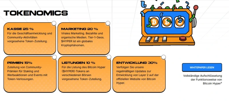 24 Millionen US-Dollar an Kapital wurden schon im Presale gesammelt – das Interesse an der Bitcoin-L2 ist riesig. Das dürfte auch am Presale-Staking-Angebot liegen, denn wer noch heute in den HYPER-Token investiert, erhält eine jährliche prozentuale Rendite (APY) in Höhe von 49 Prozent.