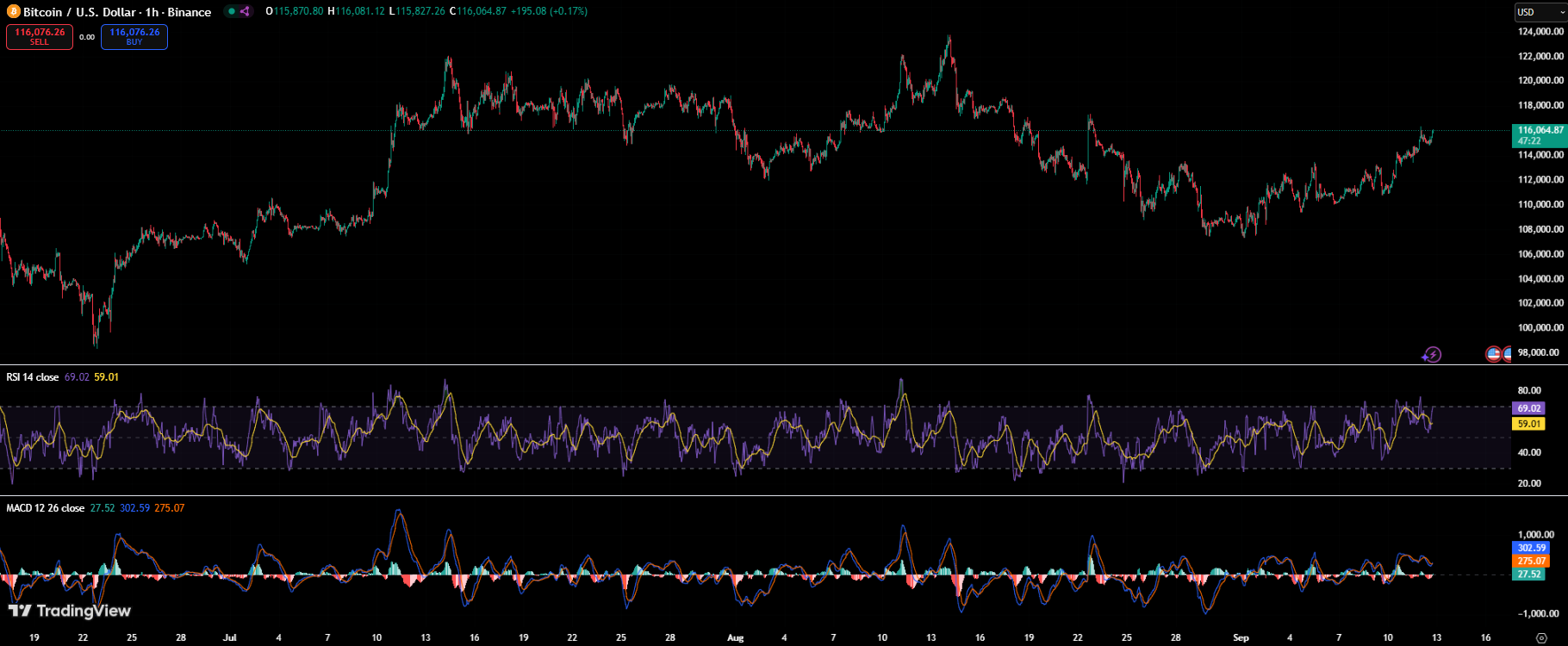 Bitcoin durchbricht die $116,000-Marke aufgrund von Hoffnungen auf Zinssenkungen und bullischen Indikatoren