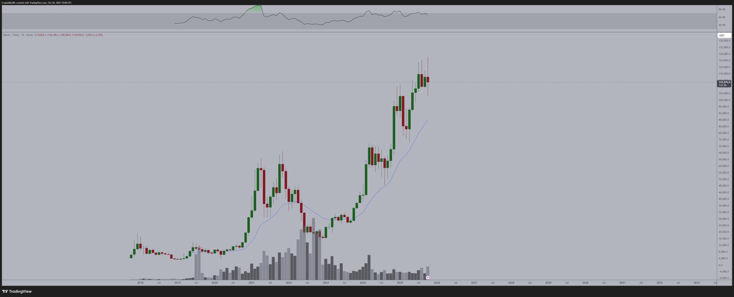 Unterdessen analysierte Michaël van de Poppe das Monats-Chart und beschrieb die aktuelle Situation als eine Phase der „Seitwärtskonsolidierung”, in der kein klares Hoch oder Tief in Sicht ist. Er glaubt, dass Bitcoin sich auf seinen nächsten großen Ausbruch vorbereitet, und merkt an, dass die langfristige Struktur weiterhin eine Fortsetzung des allgemeinen Aufwärtstrends unterstützt.