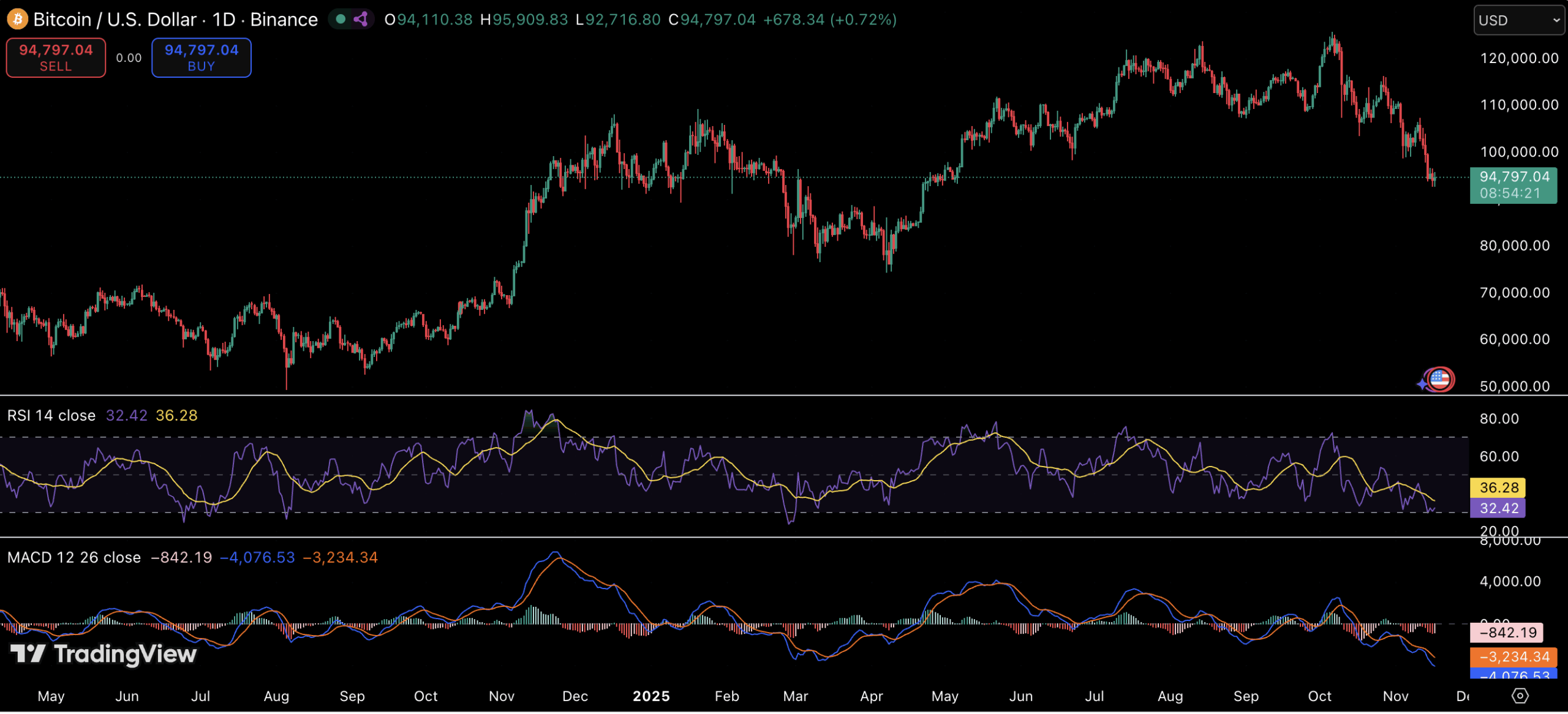 Die Leitwährung unter den Kryptowährungen wird nur knapp über der Marke von 94.000 US-Dollar gehandelt, und Analysten sind geteilter Meinung zwischen der Erwartung einer Erholungsrallye und der Befürchtung einer tieferen Korrektur.