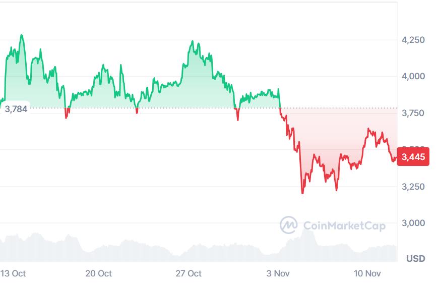 CoinMarketCap data revealed that Ethereum hovered in the $3.4K area on November 11. However, as of the same date, Ethereum accounted for $201B of the entire $314B tokenized assets across all chains. This means that despite its dominance as a settlement layer, the biggest altcoin is still undervalued.