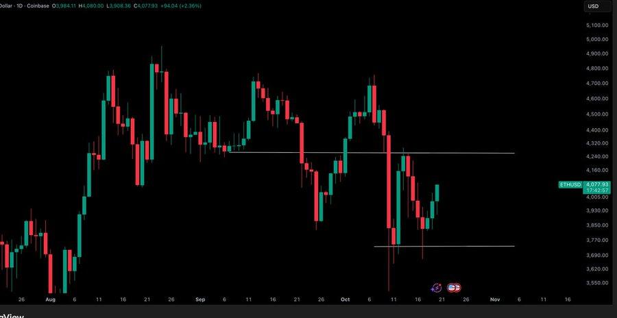 ETH is currently trading above $4,070 and has shown renewed breakout strength after rebounding from the $3,720 support level.