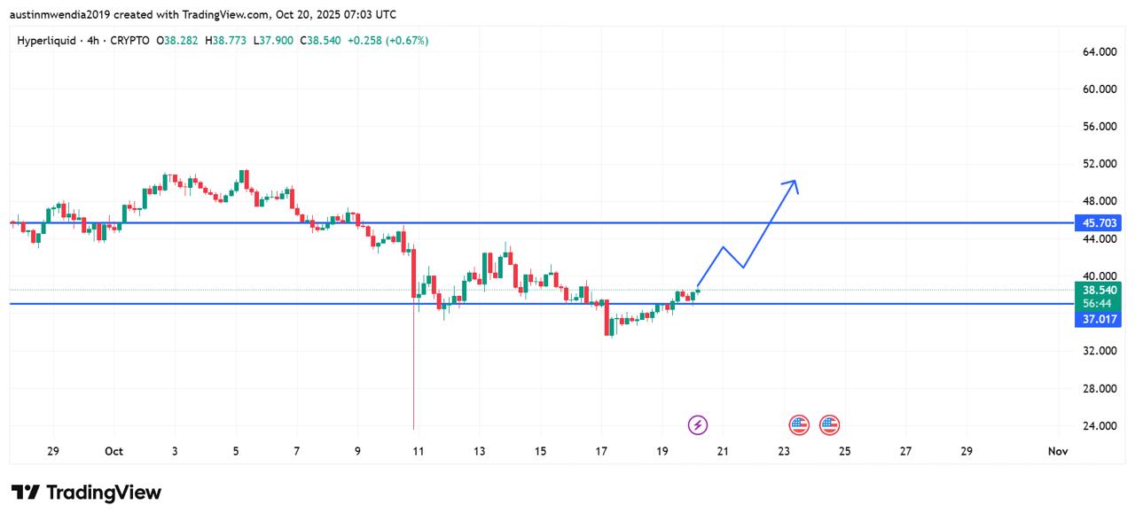 After finding strong support near $37.01, Hyperliquid has started to rebound, showing signs of fresh accumulation. This reversal implies that the bulls are gradually regaining their dominance in the market after some days of moving sideways. Momentum indicators also hint of the possible drive to the next resistance zone of $45.70.