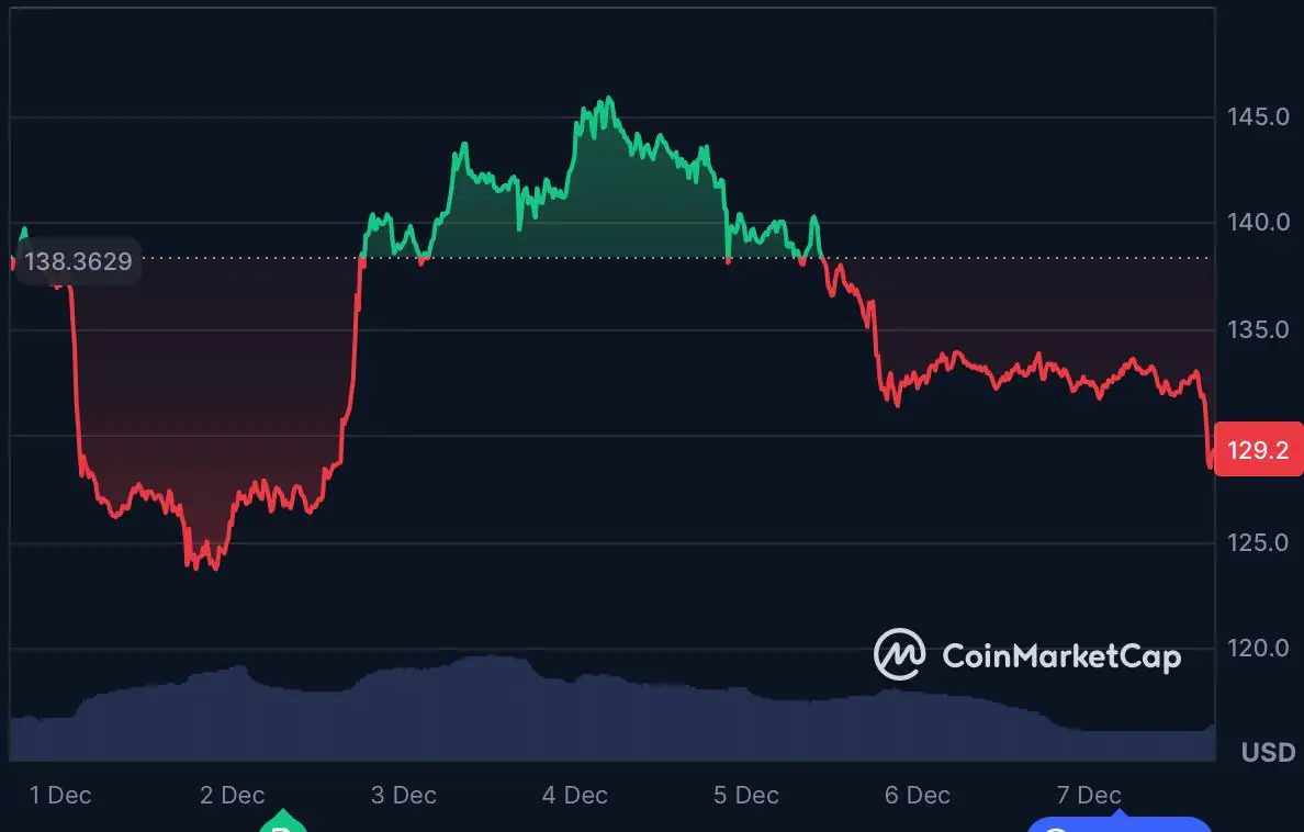 Solana is another crypto coin that has gone through turbulence. On the one-week chart, the SOL price managed to rise from its lowest point of $120 to over $140, but it failed to maintain this momentum as per CoinMarketCap. It quickly fell below $140 again, then collapsed to $129.2.