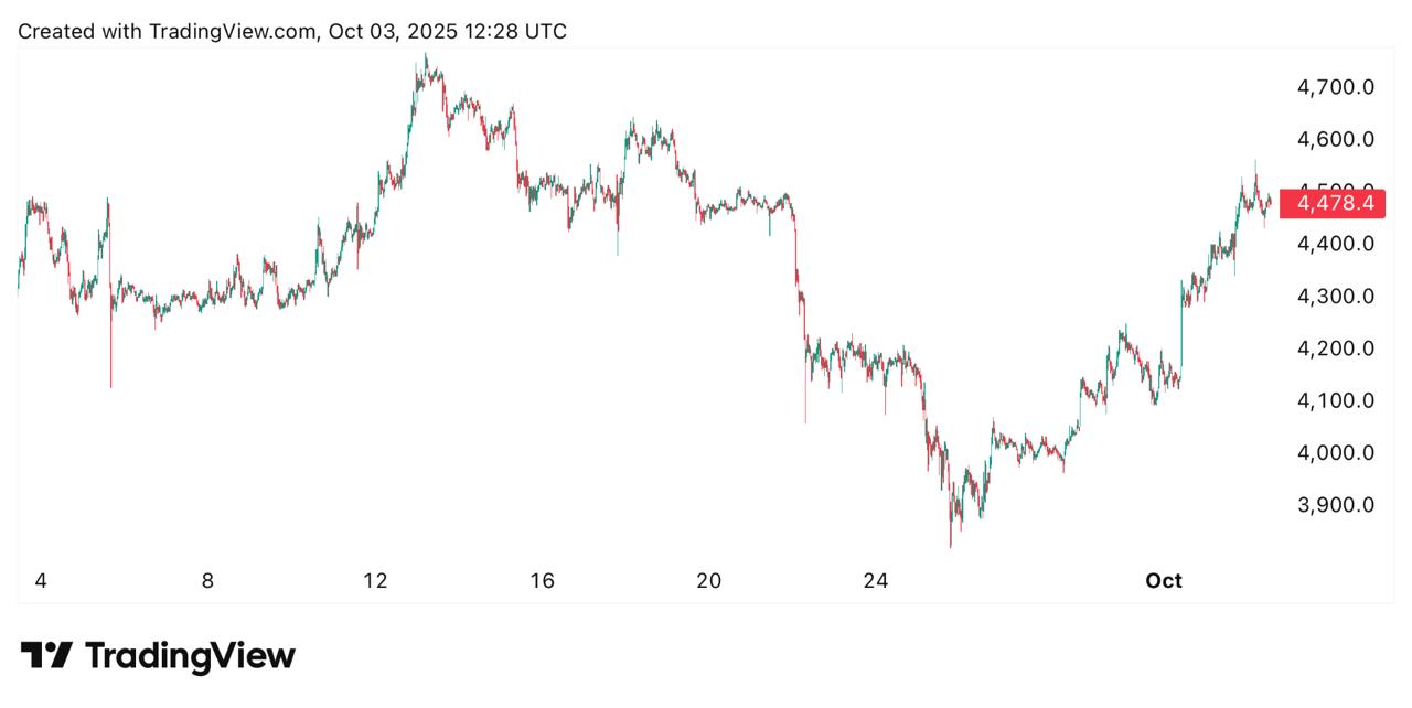 September alone saw more than $171 million in net inflows, a development that has reinforced technical support above $4,400 while draining reserves from major exchanges.