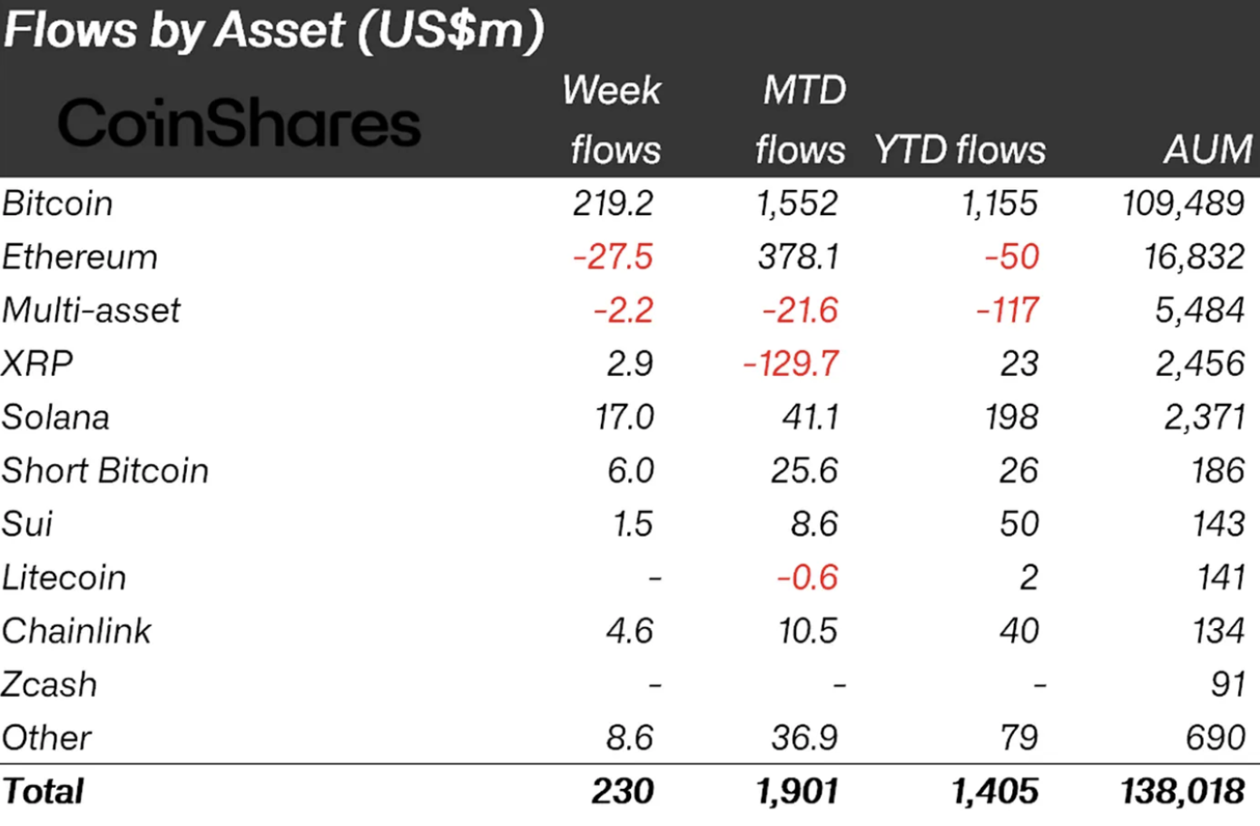 The total crypto fund market pulled in $1.405 billion in year-to-date inflows. Bitcoin alone accounts for $1.155 billion of that. Solana is positive. XRP is positive. Even Short Bitcoin products, which are instruments designed to profit from Bitcoin falling, are in positive YTD flow territory. Ethereum and multi-asset products are the only two categories in the CoinShares report sitting in the red for the year.