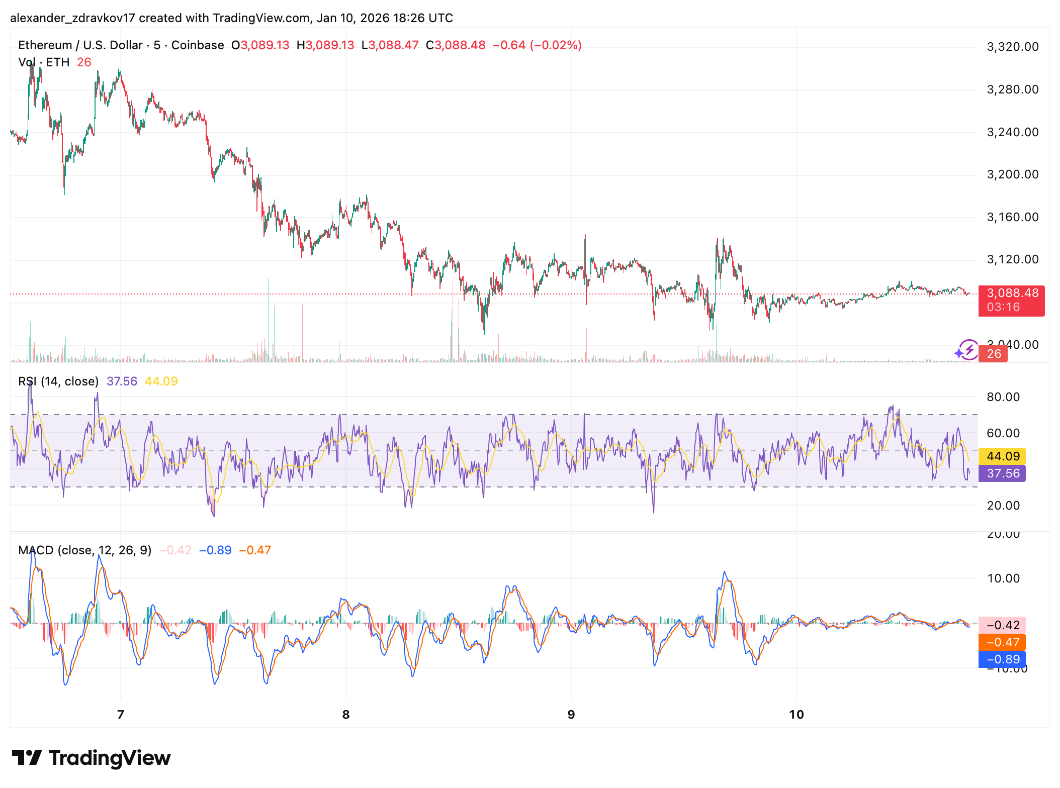 Ethereum évolue dans une fourchette étroite près du niveau des 3.090 $, montrant des signes de stabilisation à court terme après plusieurs jours de pression baissière régulière.