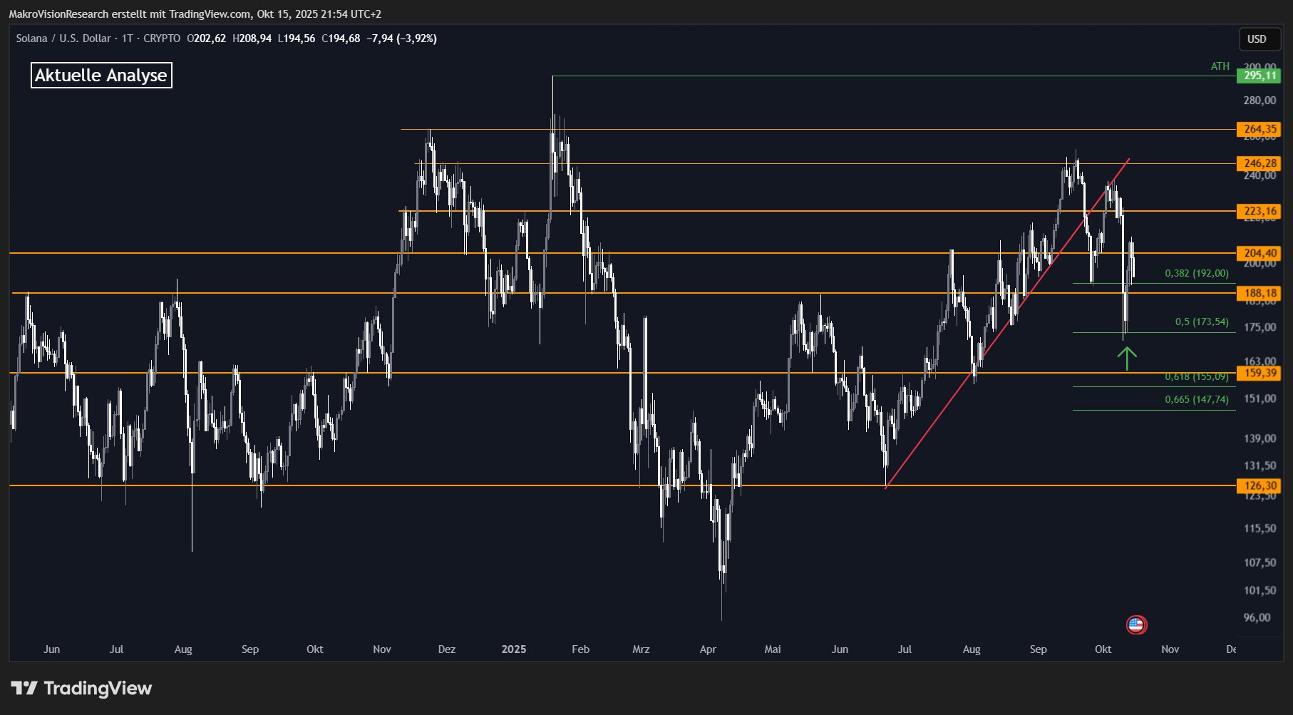 Le rallye de Solana s’est essoufflé. Après plusieurs mois de hausse régulière, le token teste désormais des niveaux de support cruciaux, tandis que les analystes de MakroVision avertissent que la structure du marché montre des signes d’épuisement.