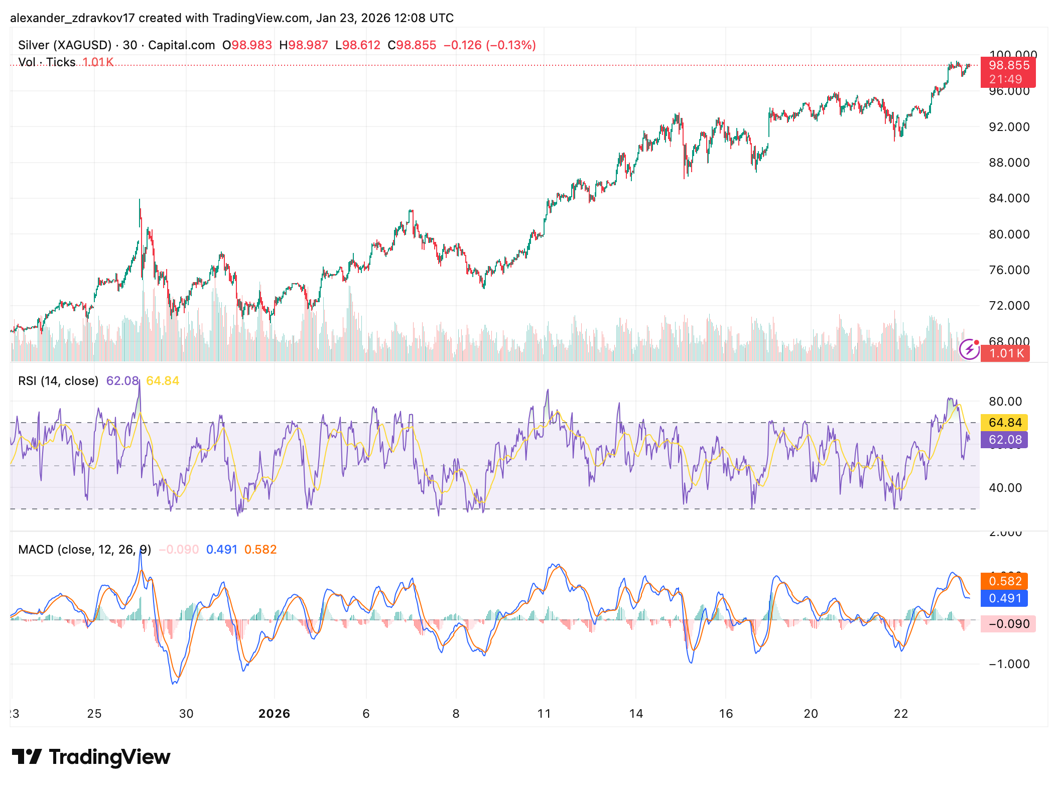 Like gold, silver’s technical structure suggests resilience rather than exhaustion. Despite brief consolidations, prices have continued to trend higher, with momentum indicators remaining elevated. The move toward $100 would mark a historic milestone for silver and further reinforce the broader precious metals breakout.