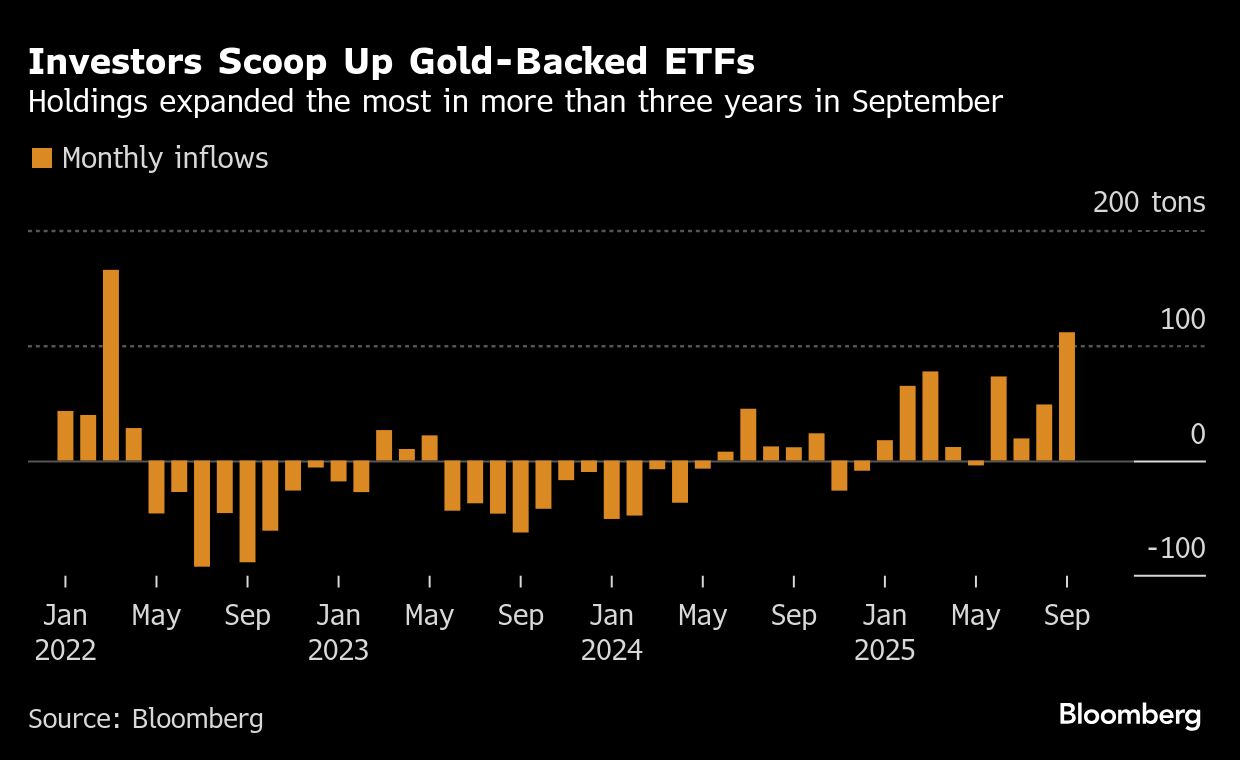 Exchange-traded funds are echoing that sentiment. September saw the largest monthly inflow into gold ETFs in over three years, as investors shifted capital out of overvalued tech equities into tangible assets.