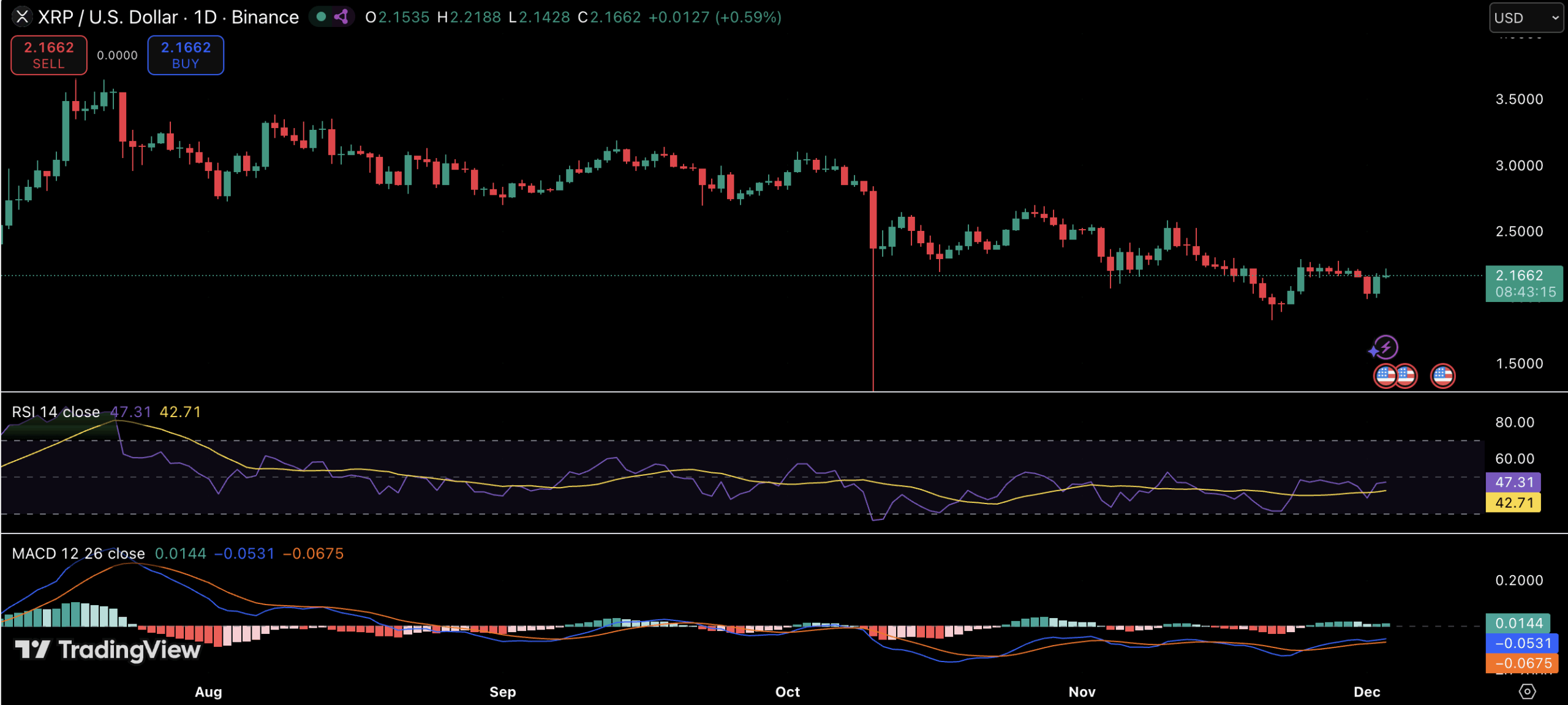 XRP sta cercando di stabilizzarsi dopo una settimana volatile e al momento viene scambiato intorno a 2,16 $.