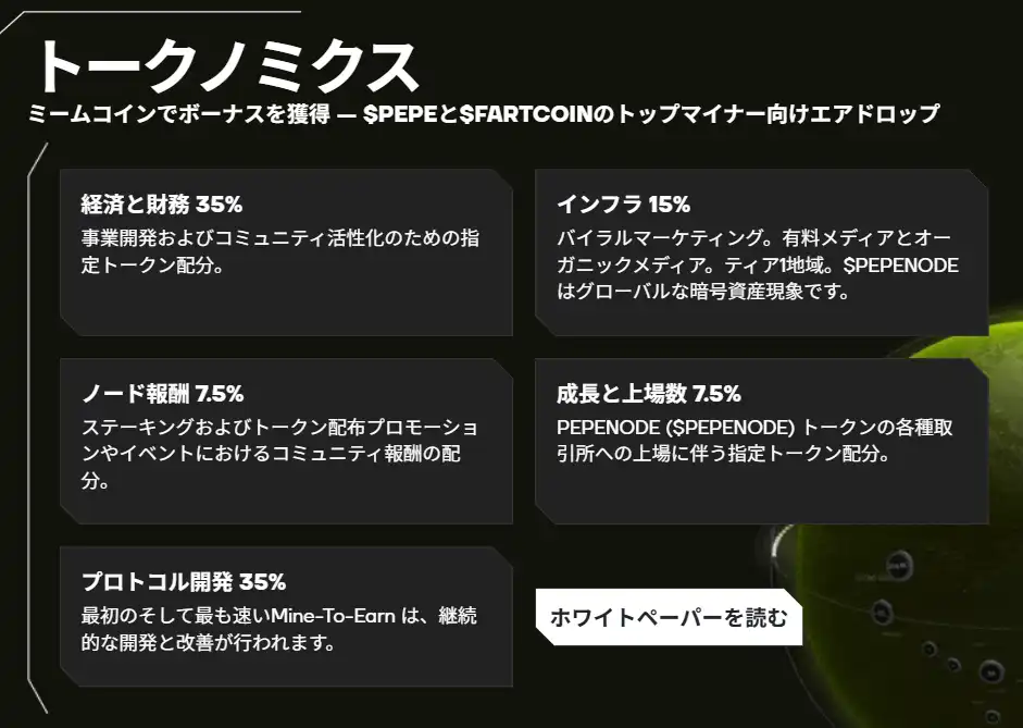 PEPENODEトークンのトークノミクスは以下のとおり。