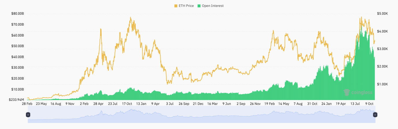 1週間で約9%下落したものの、Ethereumの反発は投資家心理の安定化を示唆しており、トレーダーが次の主要な値動きに備えている様子がうかがえる。この上昇はオープンインタレストの増加とも重なっており、市場参加者が慎重な取引期間を経て再び戻りつつあることを示している。