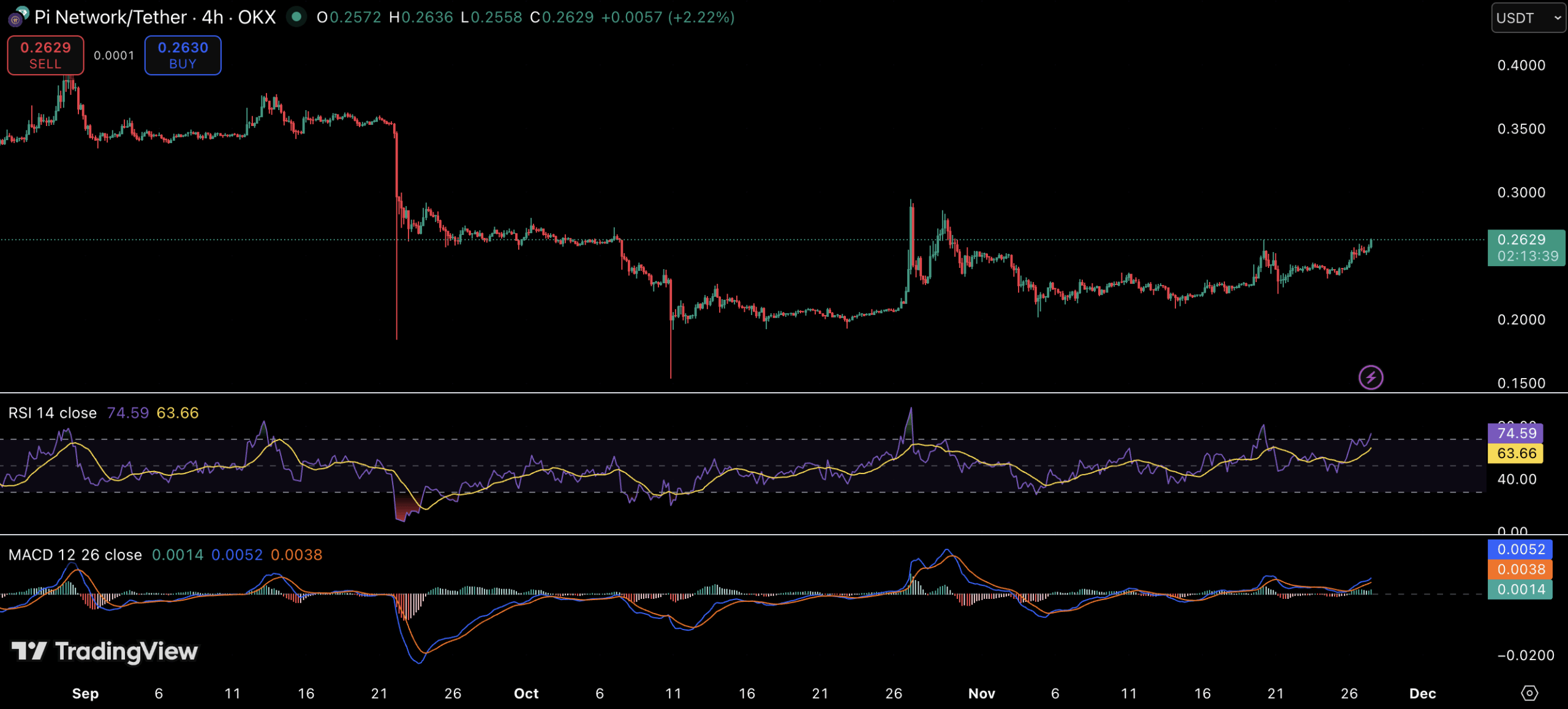 최근 Pi 생태계 확장 소식에 따라 Pi 가격 역시 긍정적으로 반응했다. 토큰은 수 주간의 횡보를 마치고 0.26달러 구간을 향해 상승 중이다.