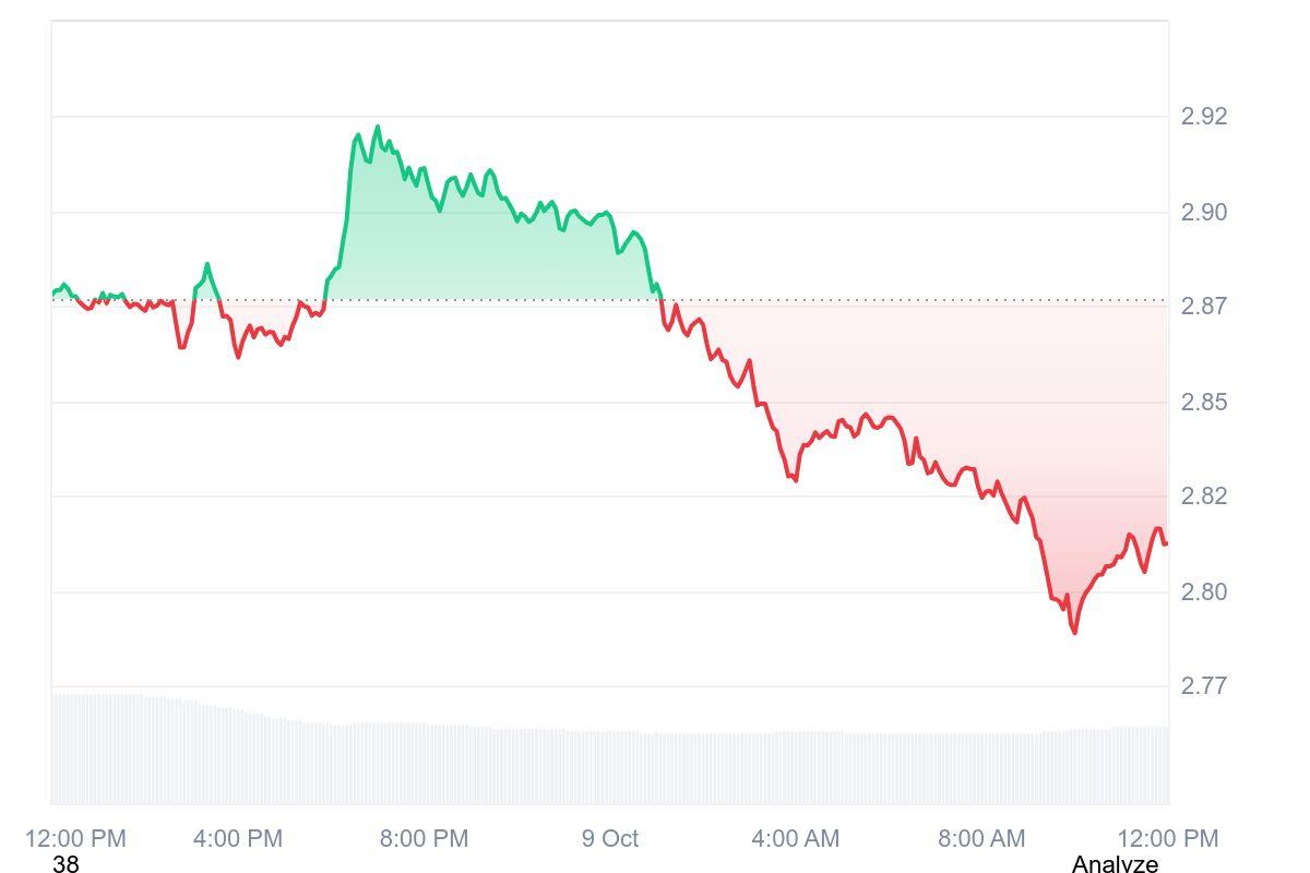 The repeated failure of bulls to sustain XRP above the downtrend line over the past few days suggests that the bears are aggressively defending the level. The XRP price turned down and plunged below the moving averages on Tuesday. That suggests the XRP/USDT pair may remain within the bearish descending triangle pattern for a while longer. Sellers will attempt to strengthen their position by pulling the price below the $2.69 support. If they succeed, the pair may start a downward move toward $2.33.