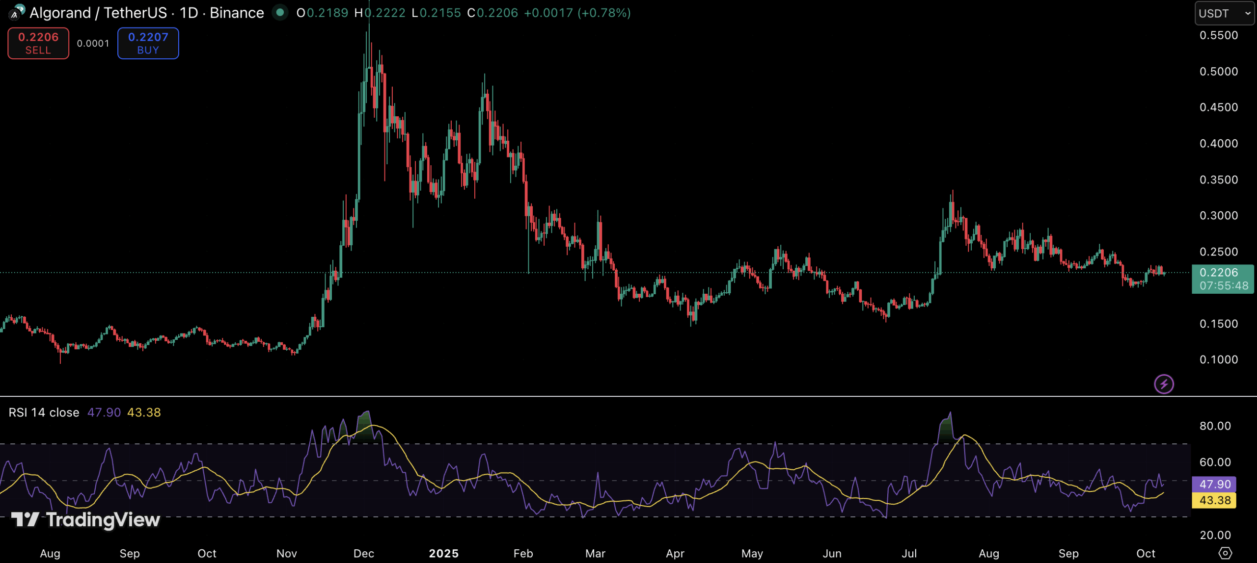 Supporting this view, recent TradingView data shows ALGO holding steady near the $0.22 level, with the Relative Strength Index (RSI) hovering around 47 – a neutral position that suggests neither overbought nor oversold conditions. Historically, similar setups have preceded upward moves once consolidation phases conclude.