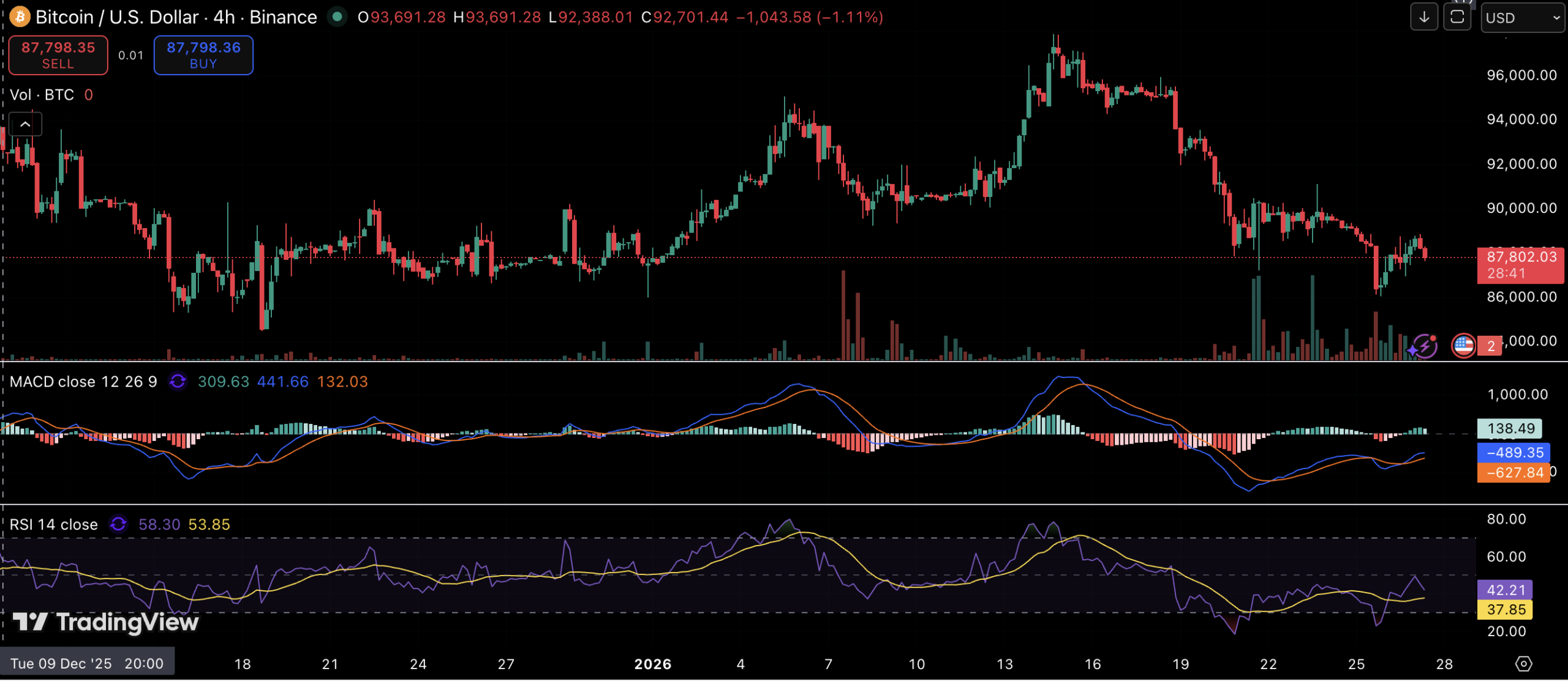 On the other hand, a clean break and sustained consolidation below 84.5k would likely shift the broader structure lower. In that case, attention would turn to levels below the November range, with the mid-70k area emerging as a primary downside target.
