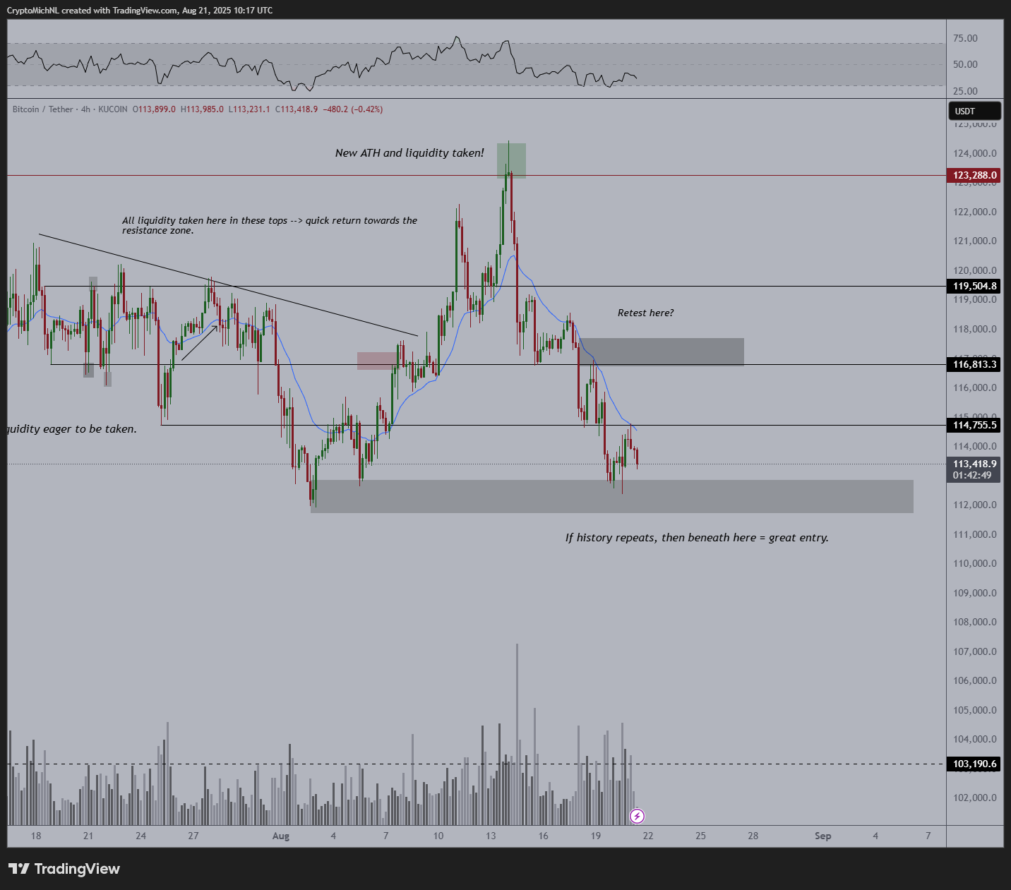 Van de Poppe pointed to liquidity zones around $112,000 as a potential entry point, suggesting history may repeat itself if Bitcoin revisits that range. He argued that past cycles often see short-term shakeouts before stronger accumulation begins.