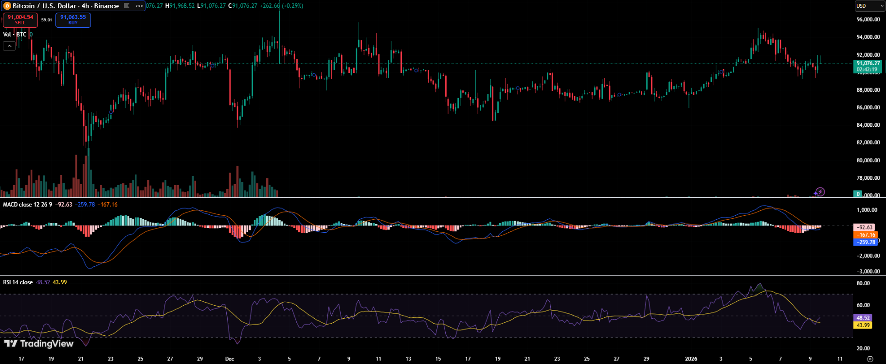 - Bitcoin is back above $91,000, but price remains stuck in a consolidation range rather than a clear uptrend.