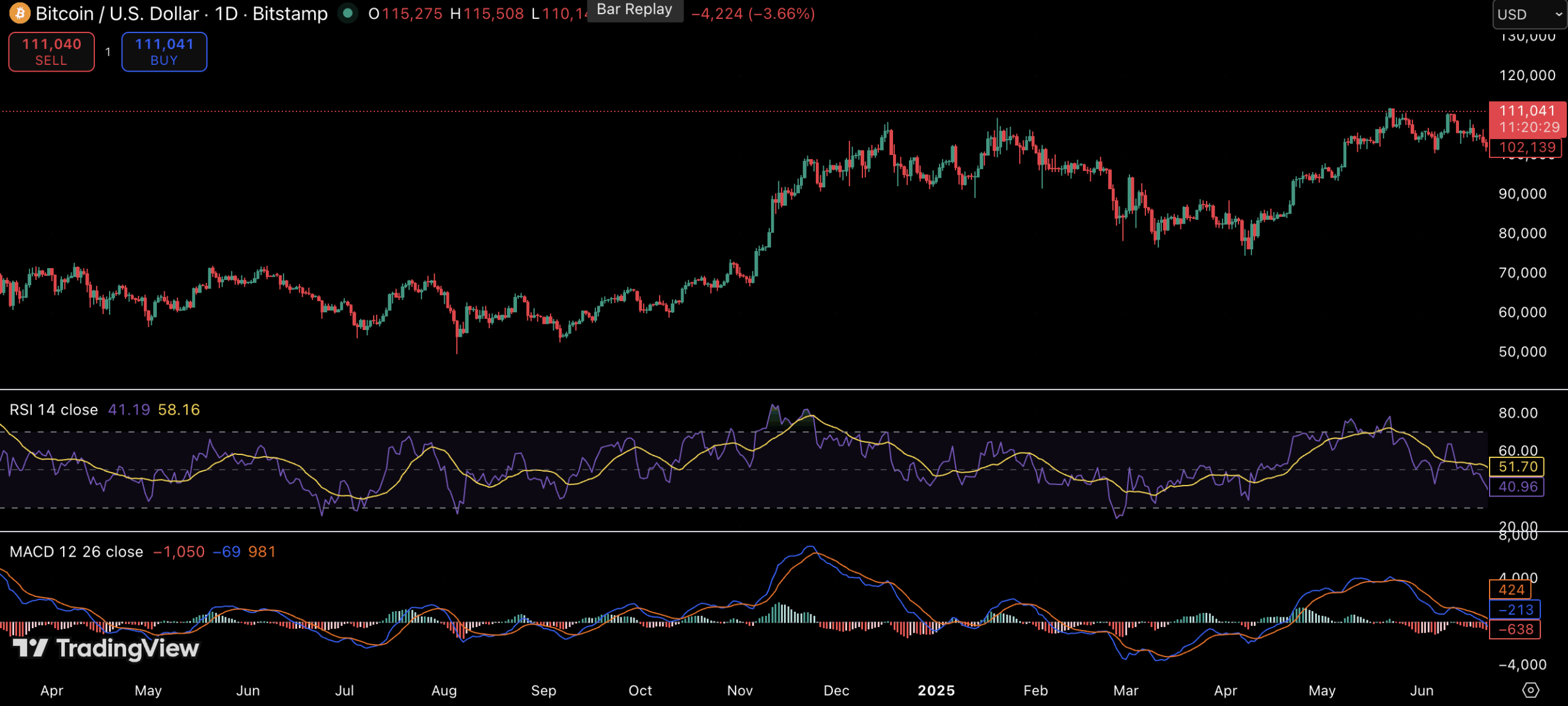 From a technical perspective, Bitcoin’s daily chart on TradingView shows a loss of upward momentum, with the RSI hovering near 41 and MACD trending negatively. Despite the recent pullback, the broader structure remains intact, as long as BTC holds above the $105,000-$108,000 range, which serves as key support from June and July consolidation zones.