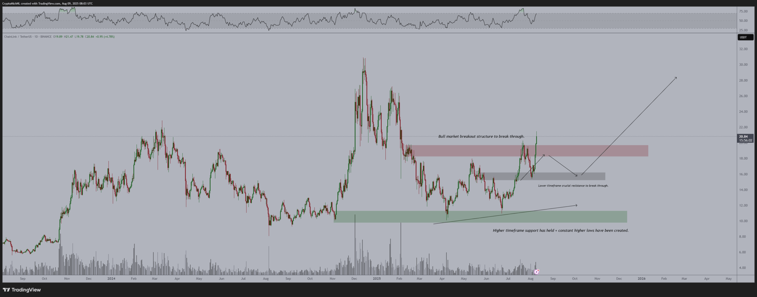 Michaël van de Poppe notes that LINK’s sustained hold above $15 and fresh seven-month high indicate “great times ahead.”