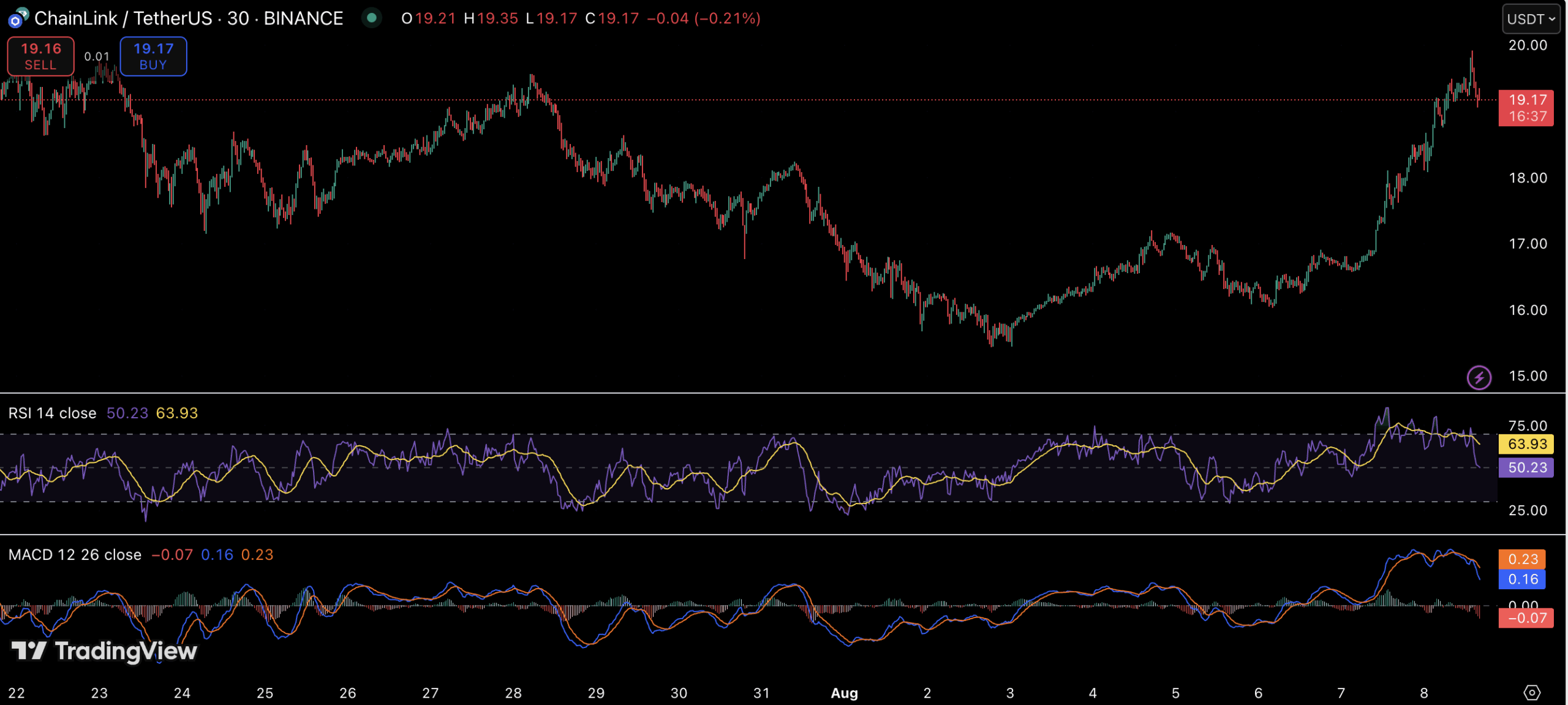 Chainlink (LINK) is riding a wave of bullish sentiment after a series of positive developments, with its price climbing to $19.33 - up 11% in the past 24 hours.