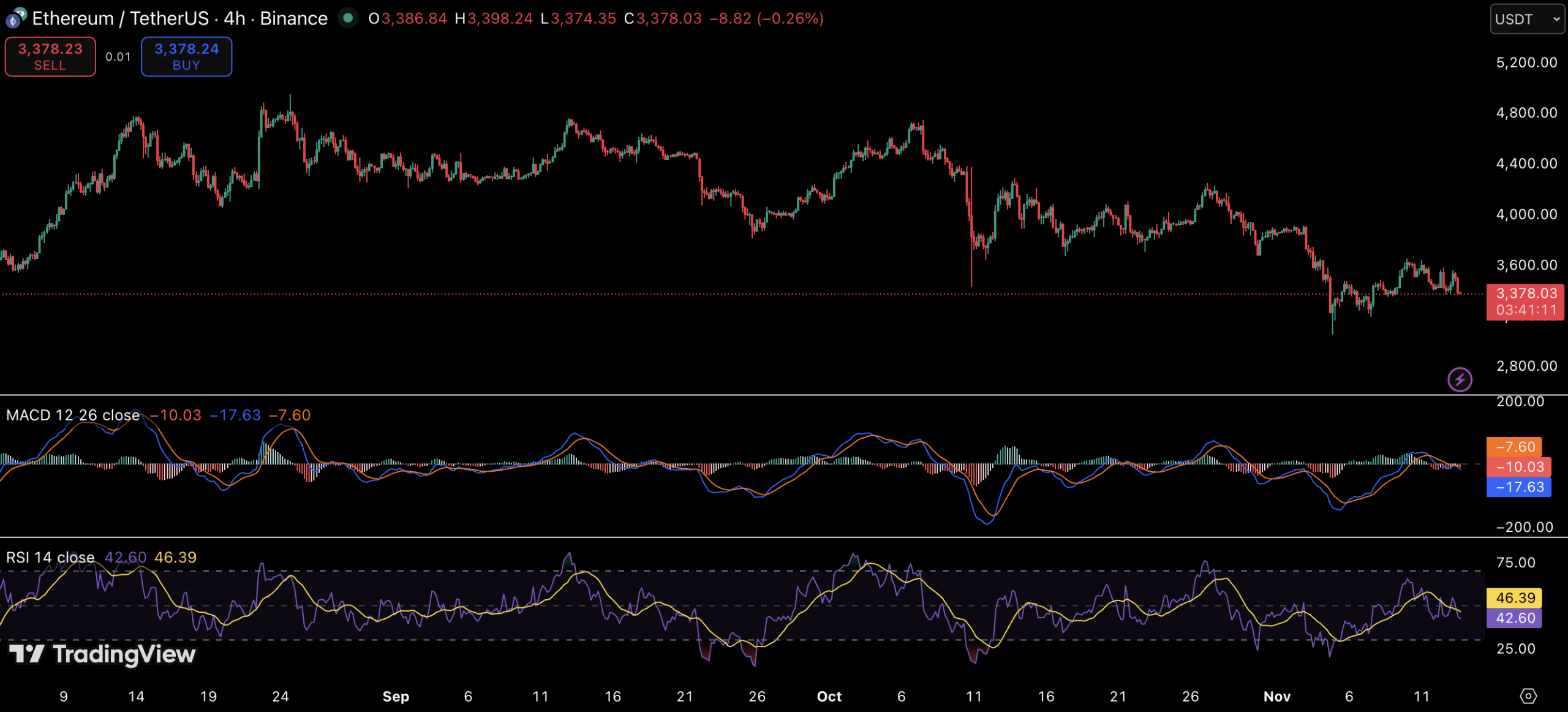 The second-largest cryptocurrency is trading near $3,380, extending a week-long decline that has pushed the asset directly onto what several analysts describe as its most important support zone of 2025.