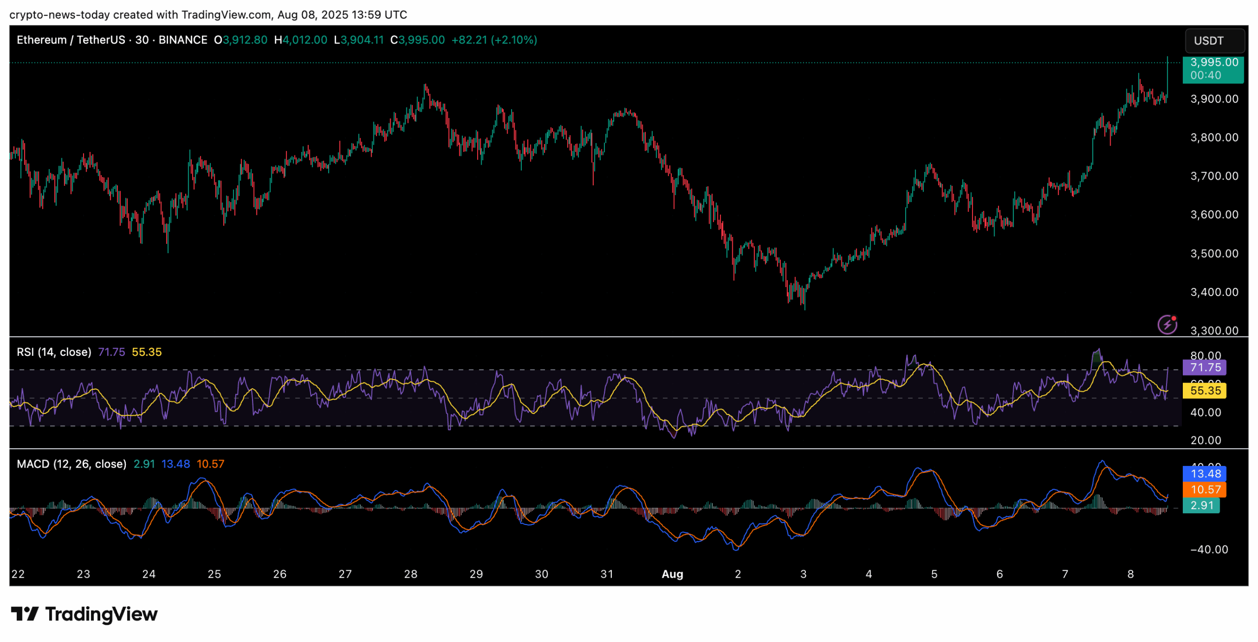 - Short-term: If ETH sustains above $4,000, a push toward $4,400–$4,600 is possible within weeks.