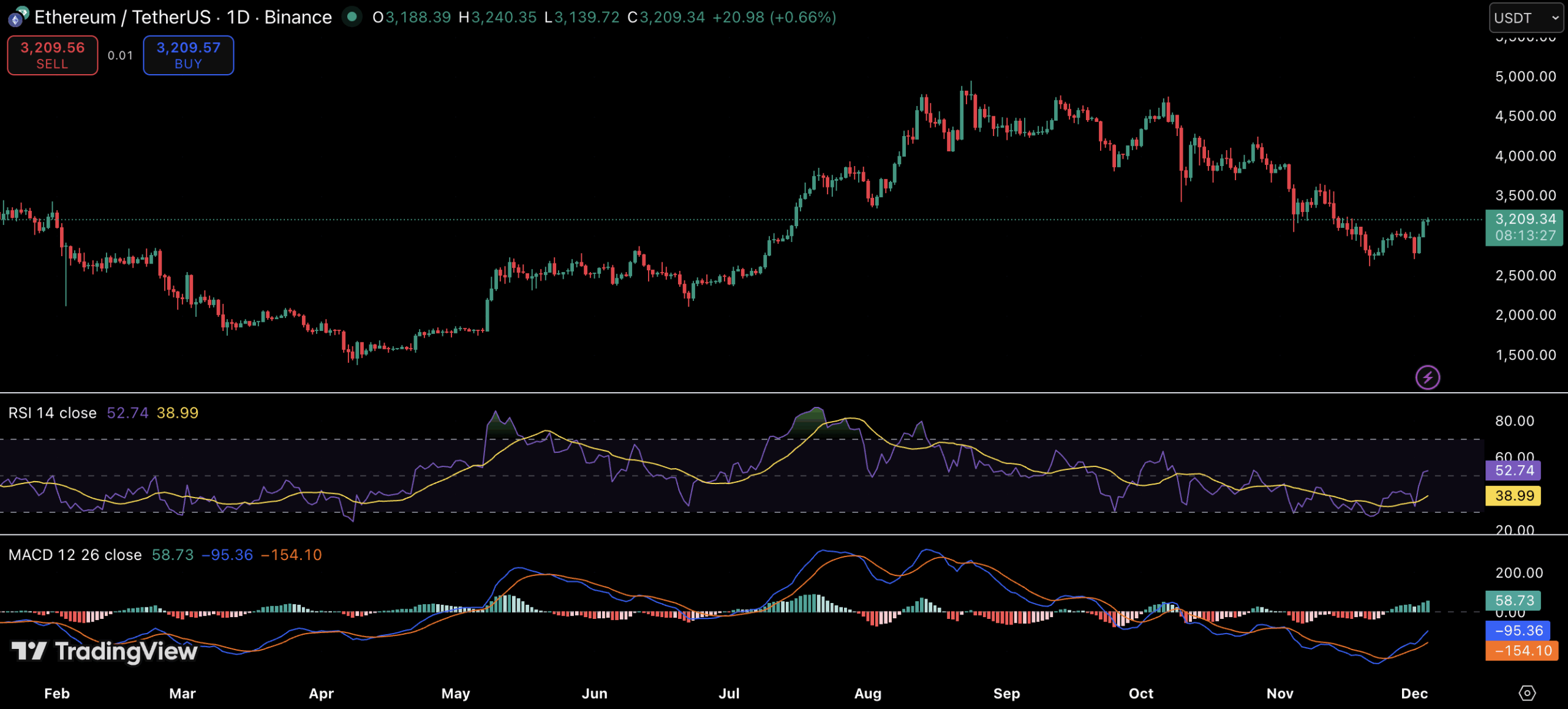 Ethereum is entering December with a renewed sense of momentum after climbing back above the 3,100 dollar region.