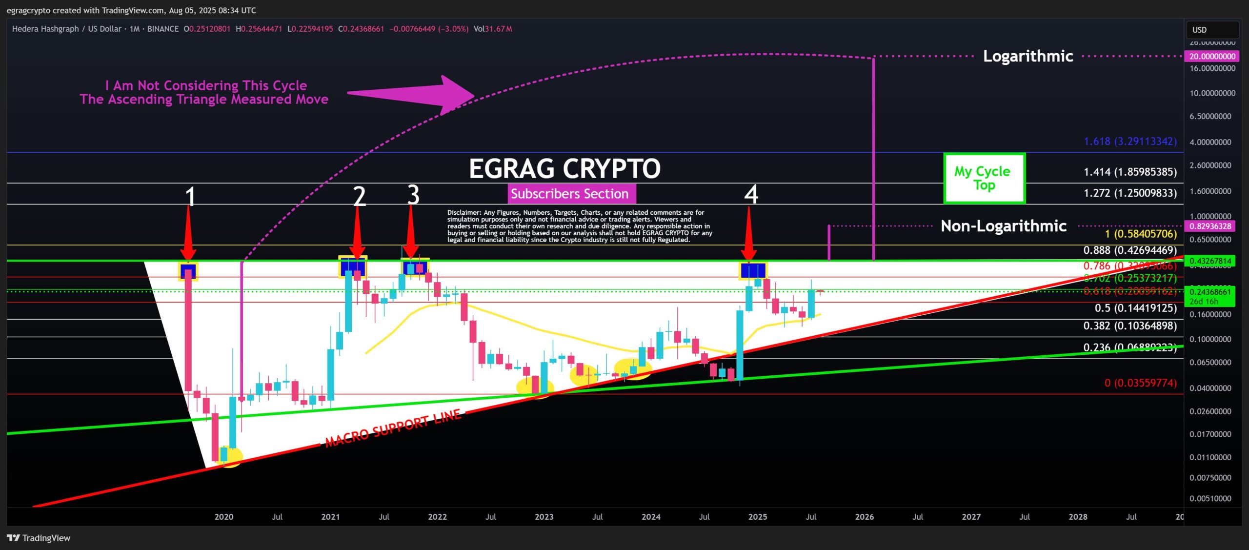 Whether or not these technical forecasts materialize, the ongoing debate between logarithmic vs. non-logarithmic tools underscores how volatile assets like HBAR require flexible models. While some traders prefer the simplicity of absolute price action, others lean on log charts to navigate parabolic moves more clearly.