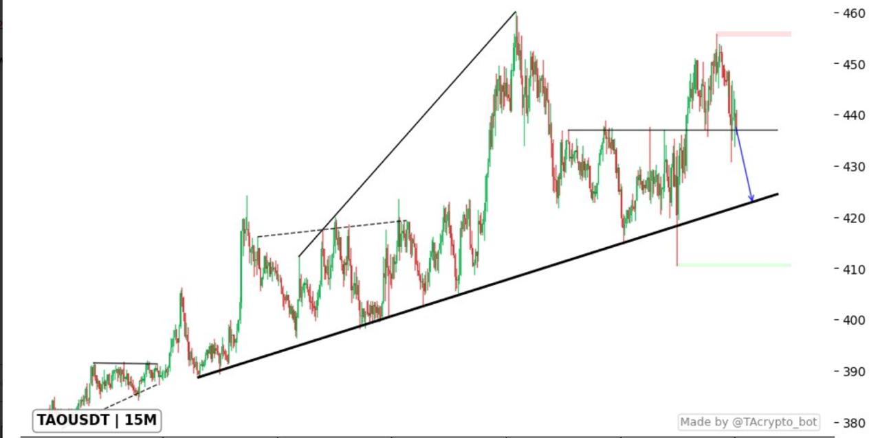 Bittensor pulled back from recent highs near $450 and is testing a long-term ascending trendline. The reaction around $420 to$ 425 is key. A bounce can send Bittensor back to $450. The signal is clean and helps traders plan entries without guessing.