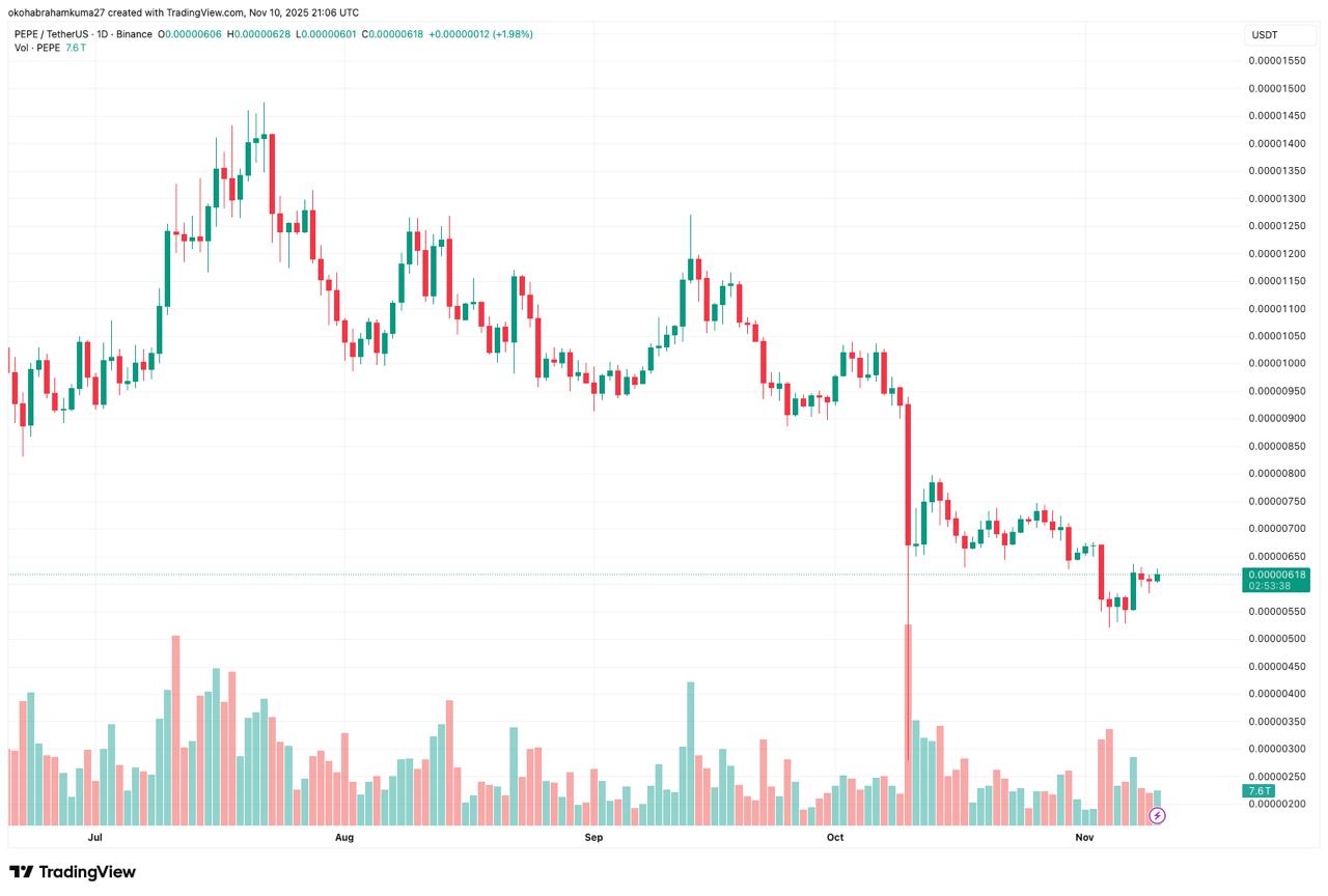 The PEPE coin prediction is currently caught in a technical downtrend. The token has managed to outperform the global market with a 6% gain in the last week, showing its strong community is buying the dip. However, the sentiment remains bearish, and the Fear & Greed Index is at a low 29, indicating “fear.” The PEPE price chart shows the token is still trapped below its key 50-day and 200-day moving averages, a classic bearish setup that suggests sellers are still in control.
