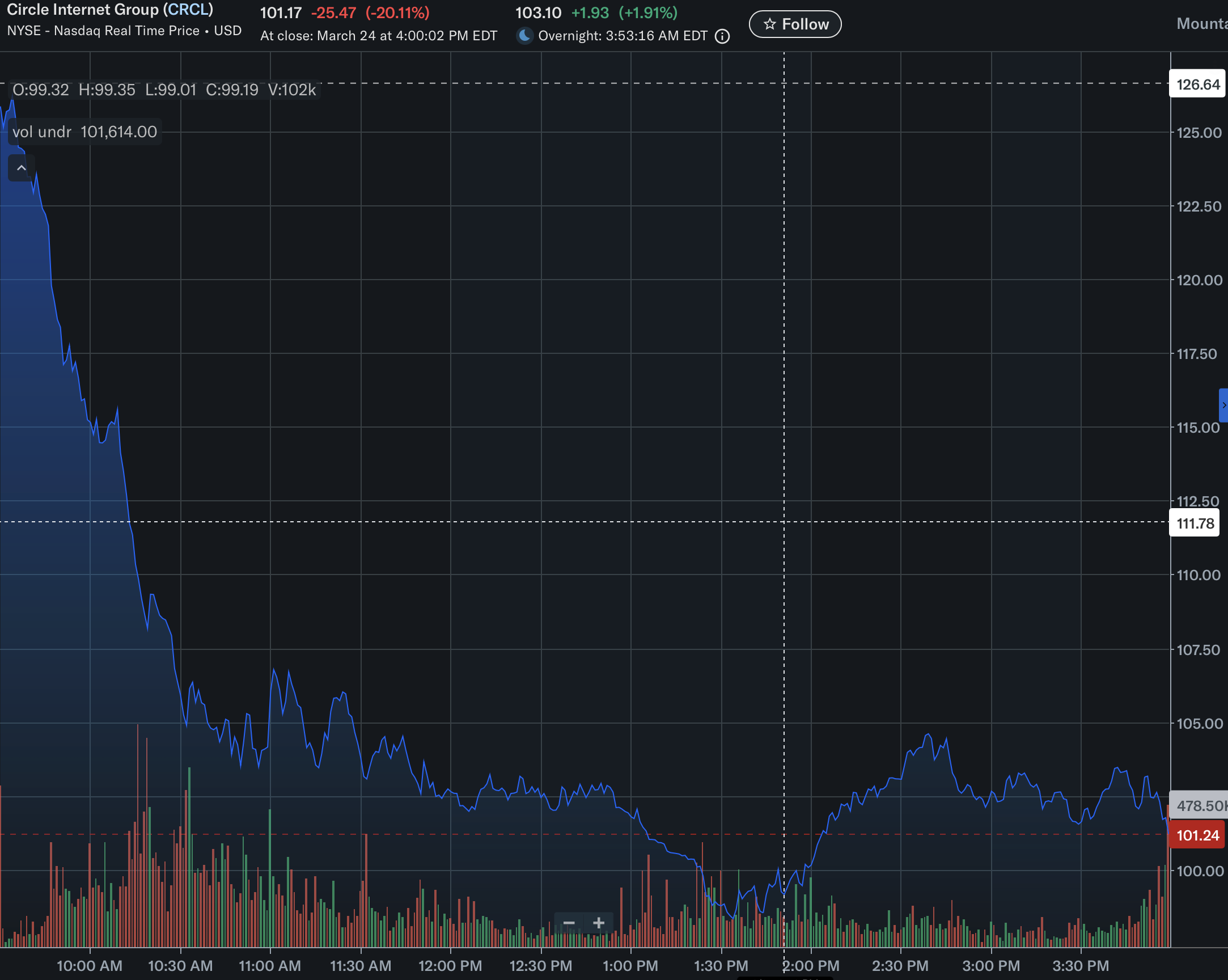 - Circle dropped 20% on yield ban fears