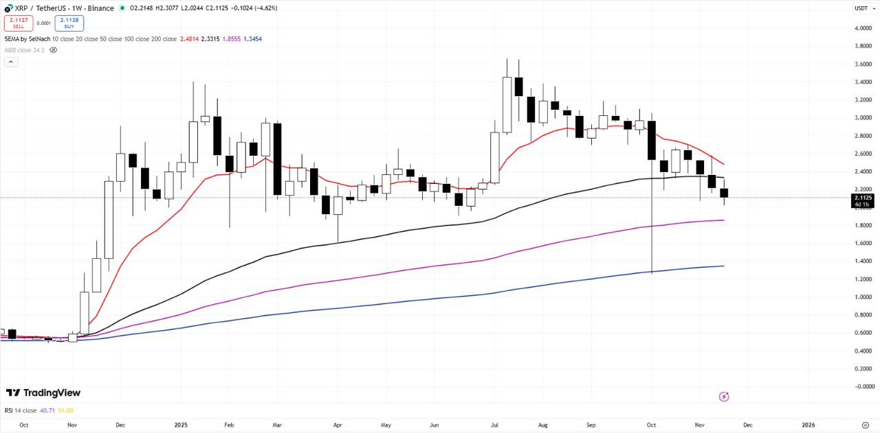 The first data prints already hint at this reality. ETF volume has been solid, and there is not even a sniff of a reversal in the XRP chart with the bearish trend remaining unbroken. XRP still looks heavy from a fundamentals perspective, and it would not be surprising for it to eventually fill the October Flash Crash wick at $1.40.